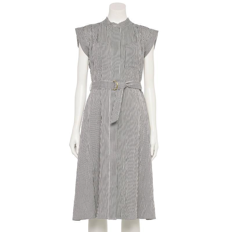 Dress with ease and style with this women's Adaptive Cap Sleeve Shirt Dress from Nine West. Click on this ADAPTIVE GUIDE to find out about fit, functionality and more!Dress with ease and style with this women's Adaptive Cap Sleeve Shirt Dress from Nine West. Click on this ADAPTIVE GUIDE to find out about fit, functionality and more!ADAPTIVE FEATURES Tag free design for added comfortNeckline opens larger to allow for easy dressing with hidden magnetic closure.Added room through body adds comfort and makes dressing easierHidden magnets allow quick and easy functionality.FEATURES Turtleneck Cap sleeves Button closure 2 pockets Coordinating belt Fully lined Twill constructionFIT & SIZING Classic fit 45-in. length from shoulder to hem Maxi length hits at the ankleFABRIC & CARE Lyocell, rayon, nylon Lining: polyester Machine wash Imported Color: Gray Stripe. Gender: female. Age Group: adult.