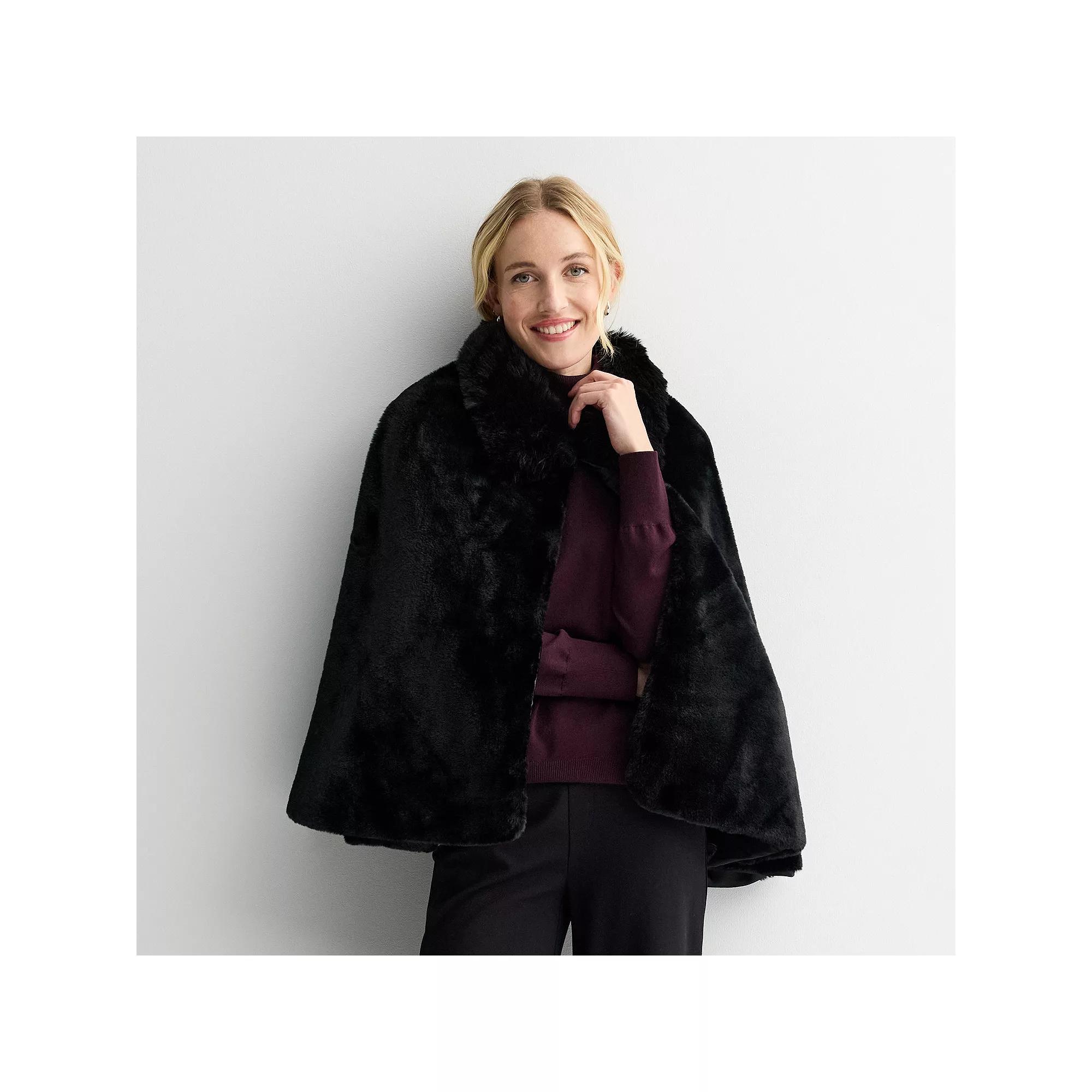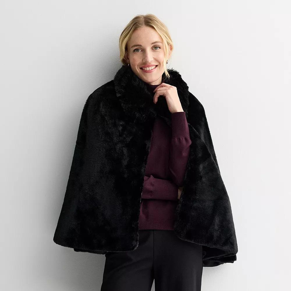 Elevate your outerwear game with this stunning cape from Nine West, featuring a chic hook and eye closure for effortless style. Perfect for layering over your favorite outfits, this all-over faux fur piece adds a touch of luxury and warmth, ensuring you shine at any occasion. How do you accessorize? Check out our ACCESSORIES GUIDE for essential tips to elevate your style with must-have accessories. - https://www.kohls.com/feature/accessories-guide.jsp. FEATURES: Hook and eye closure, Lightweight. FIT & SIZE: Shawl silhouette, One size fits most. DETAILS: Imported. MATERIAL & CARE: Polyester, Hand wash. Color: Black. Gender: female. Age Group: adult.