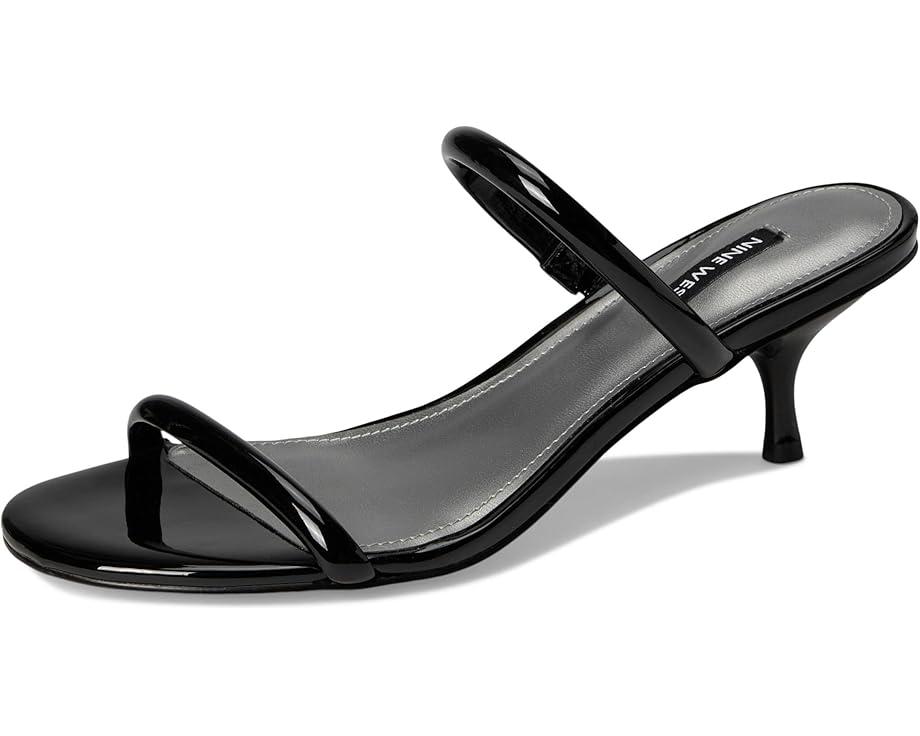 Stylish and cute, the Nine West® Berri dress sandal is the perfect wardrobe staple. It features a chic open round-toe design, a slip-on silhouette, and mid mid-stiletto heel. Crafted with a double sleek strapped faux leather upper and comfortable footbed, this sandal is sure to impress!
