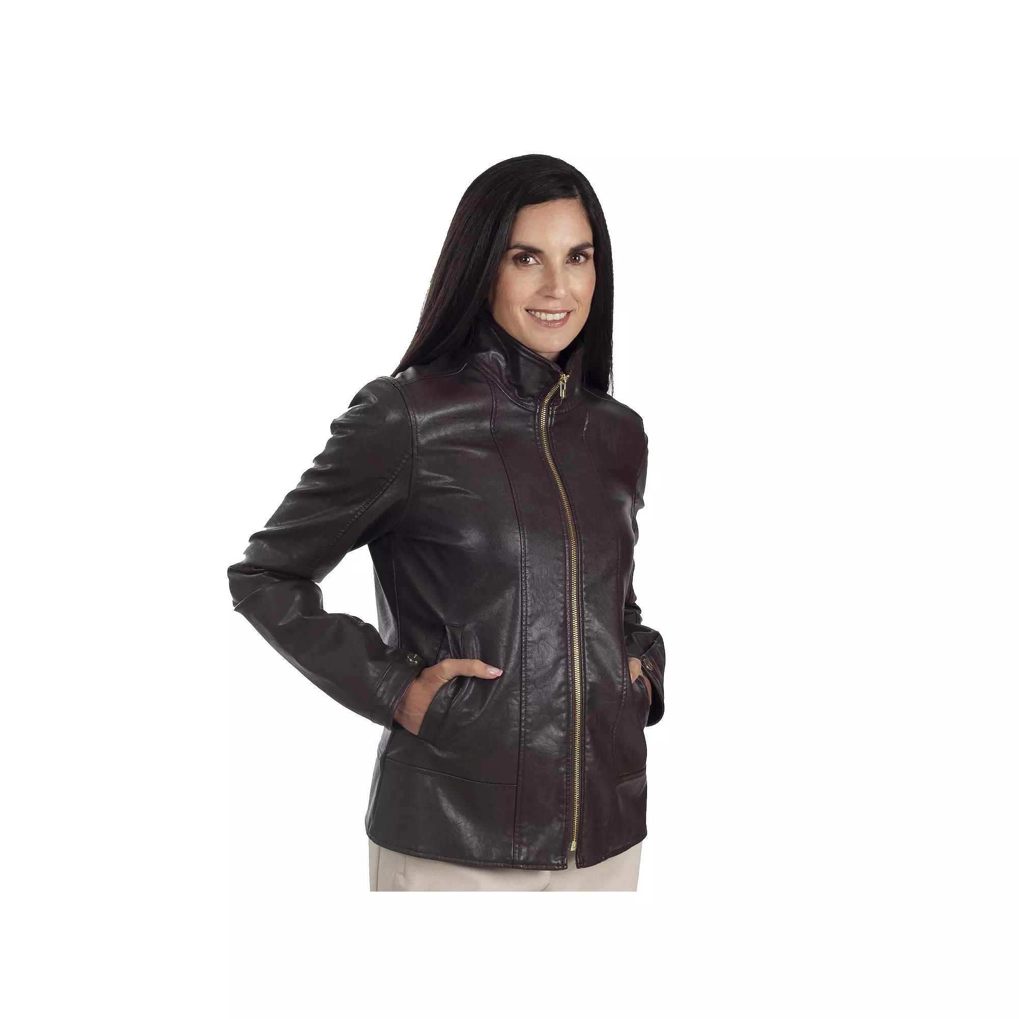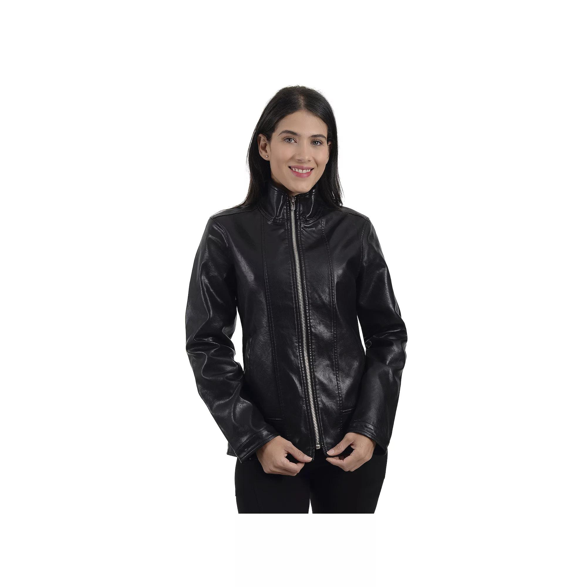 Add an edgy touch to any outfit with this women's faux-leather biker jacket by Nine West. Click on this WOMEN'S GUIDE to find the perfect fit and more! - https://www.kohls.com/feature/womens-fit-guide.jsp. Decorative stitching, Faux-leather construction, Zipper front, Long sleeves with snap cuffs, 2 pockets, No Hood. FIT & SIZING: Designed to hit just below the waist, Lightweight. FABRIC & CARE: Polyurethane, Lining: polyester, Metal snaps & zipper, Dry clean, Imported. Size: Small. Color: Black. Gender: female. Age Group: adult.