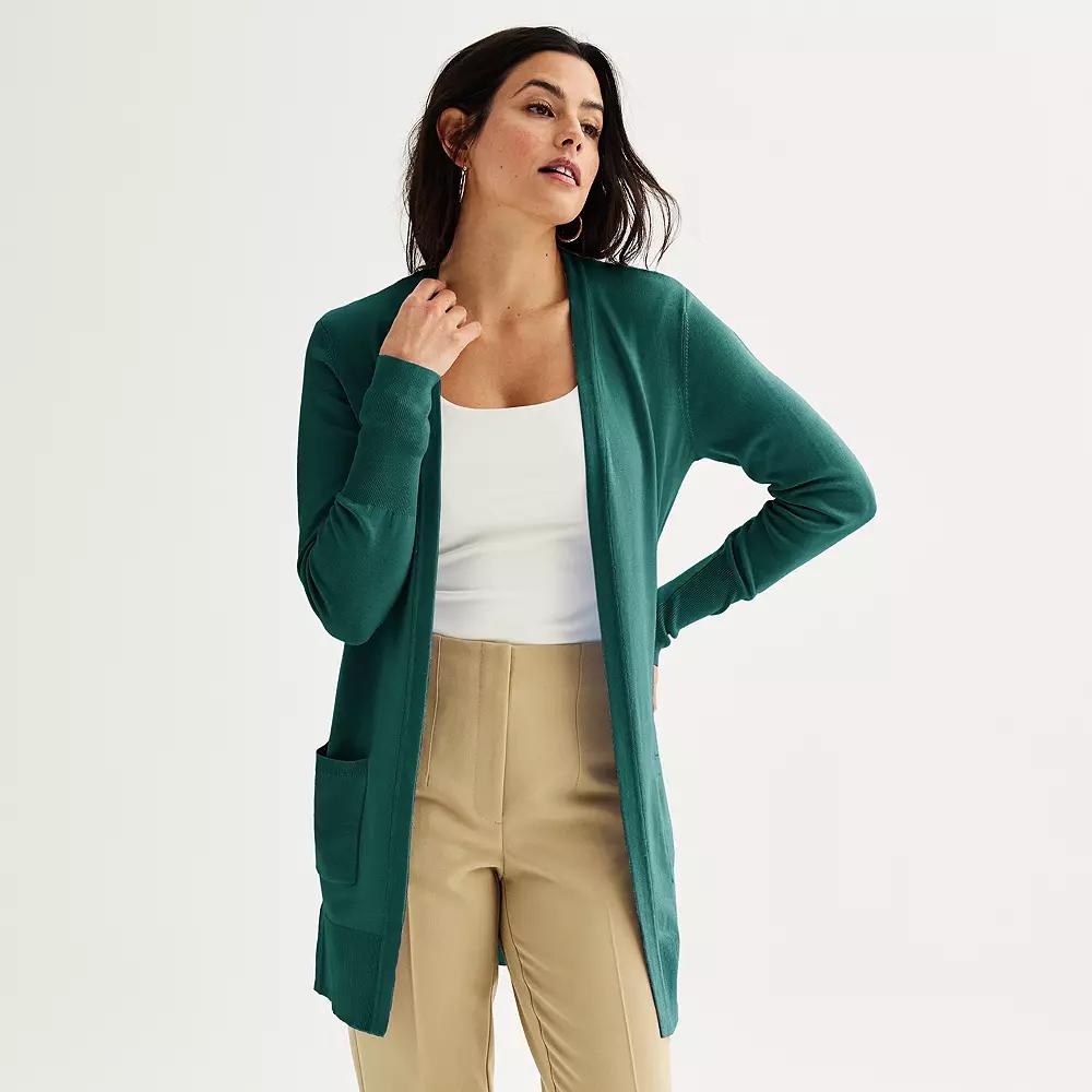 This Womens Nine West Essential Cardigan is the perfect added layer for a little warmth and a lot of style. Click on this WOMENS GUIDE to find the perfect fit and more! FEATURES Two front pockets Straight hem Rib detailing on bottom hem, neckline, and cuffs Long sleevesFIT & SIZING Regular fit 32-in. length from shoulder to hemFABRIC & CARE Rayon, polyester Machine wash Imported Size: X Small. Color: Light Blue. Gender: female. Age Group: adult.