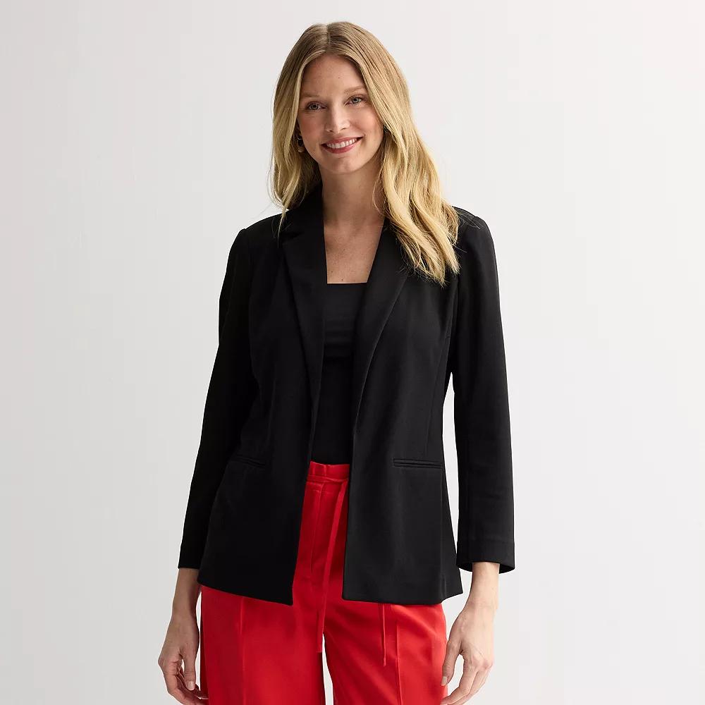 Perfectly polished for the office, this womens Nine West everyday closureless blazer features a professional yet stylish look. Click on this WOMENS GUIDE to find the perfect fit and more!Perfectly polished for the office, this womens Nine West everyday closureless blazer features a professional yet stylish look. Click on this WOMENS GUIDE to find the perfect fit and more!FEATURES 2 front pockets Straight hem Set-in sleevesFIT & SIZING 27 1/4-in. lengthFABRIC & CARE PBT, spandex Machine wash Imported Size: Medium. Color: Mineral Black. Gender: female. Age Group: adult.