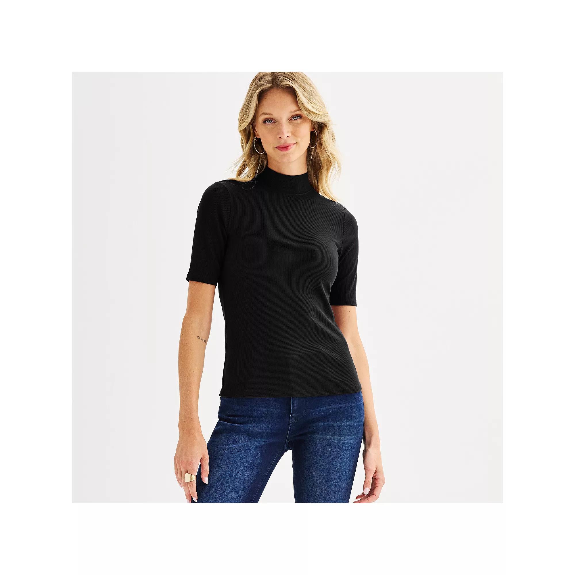Step into a gorgeous new look with this Petite Nine West Fitted Elbow Sleeve Mockneck T-Shirt.Click on this WOMENS GUIDE to find the perfect fit and more! Step into a gorgeous new look with this Petite Nine West Fitted Elbow Sleeve Mockneck T-Shirt.Click on this WOMENS GUIDE to find the perfect fit and more! FEATURES Mockneck Elbow sleeves Pullover styling Unlined Straight hemFIT & SIZING Fitted styling 22 1/2-in. length from shoulder to hemFABRIC & CARE Rayon, spandex Ribbed construction Machine wash ImportedRESPONSIBLE Tested for harmful substances STANDARD 100 by OEKO-TEX CERTIFIED Certification No. SE020 189927 Testing Institute: Testex AG: Swiss Textile Testing Institute www.oeko-tex.com/standard100 Size: M Petite. Color: Mineral Black. Gender: female. Age Group: adult.
