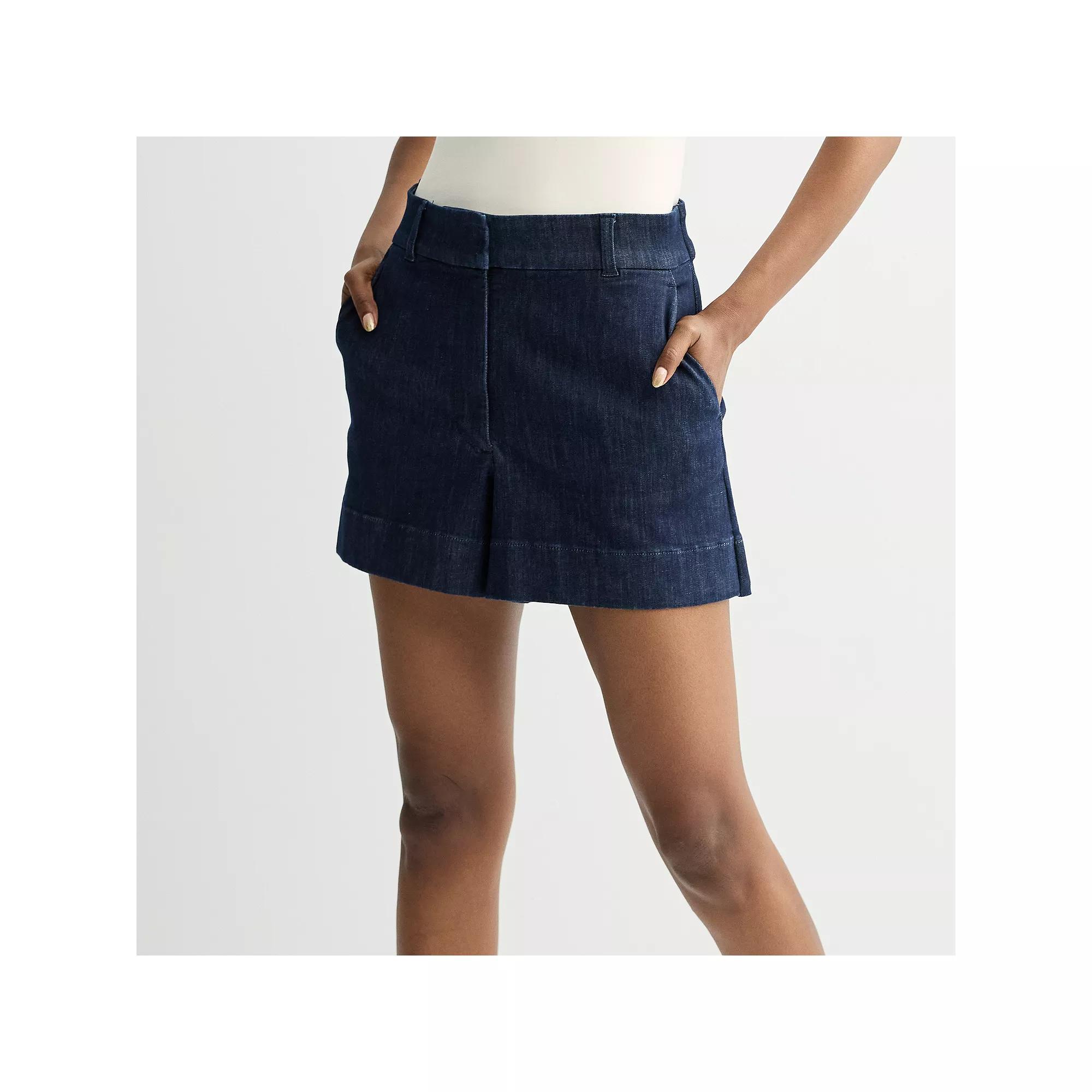 You'll love the must-have style of these women's Nine West High-Rise Clean Front Shorts.Click on this WOMEN'S GUIDE to find the perfect fit and more!You'll love the must-have style of these women's Nine West High-Rise Clean Front Shorts.Click on this WOMEN'S GUIDE to find the perfect fit and more!FEATURES Skort design Elastic waistband Zipper front 4 pockets Straight hem Twill constructionFIT & SIZING Midrise sits on the high hip 5-in. inseam 14 1/2-in. leg openingFABRIC & CARE Cotton, lyocell Lining: polyester Machine wash Imported Size: 12. Color: Mid Blue Denim Wash. Gender: female. Age Group: adult.
