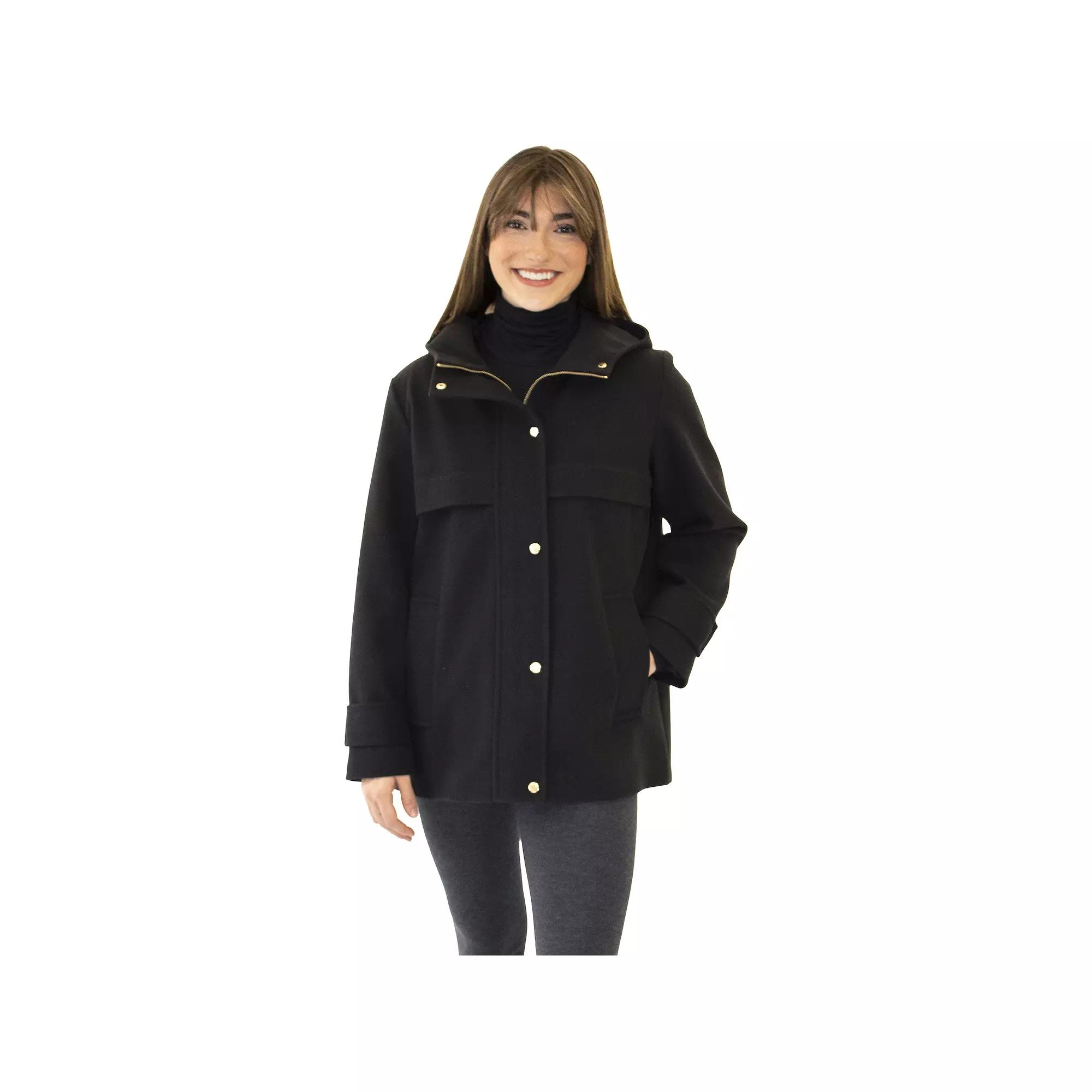 Embrace the chill with this stylish and cozy coat that features an attached hood and a snap-and-zipper front closure, ensuring you stay snug while looking effortlessly chic. With two front pockets for your essentials and long sleeves to keep you warm, this Nine West creation is ready to elevate your winter wardrobe and turn heads on every outing. Click on this WOMEN'S GUIDE to find the perfect fit and more! - https://www.kohls.com/feature/womens-fit-guide.jsp. FEATURES: Woven faux wool construction for a stylish look, 2 front pockets for convenient storage, Attached hood for added warmth, Snap and zipper front closure for secure fit, Fully lined for comfort and insulation, Midweight design suitable for transitional weather. FIT & SIZE: True to size, 28-in. length from shoulder to hem, Designed to hit just below the waist. MATERIAL & CARE: Polyester, Fully lined, Dry clean. DETAILS: Snap & zipper front closure, Attached hood, Long sleeves, 2 front welt pockets, Imported. Size: Medium. Color: Black. Gender: female. Age Group: adult. Material: POLY BLEND.