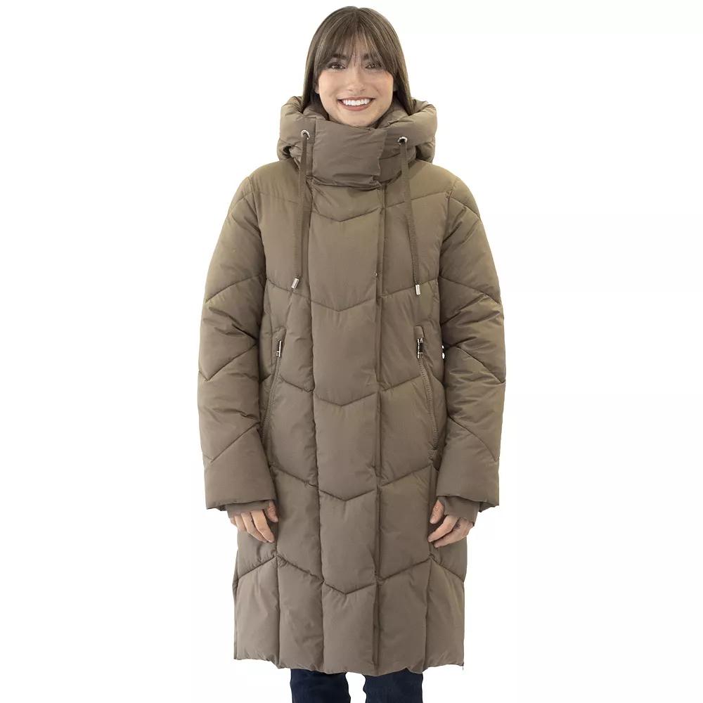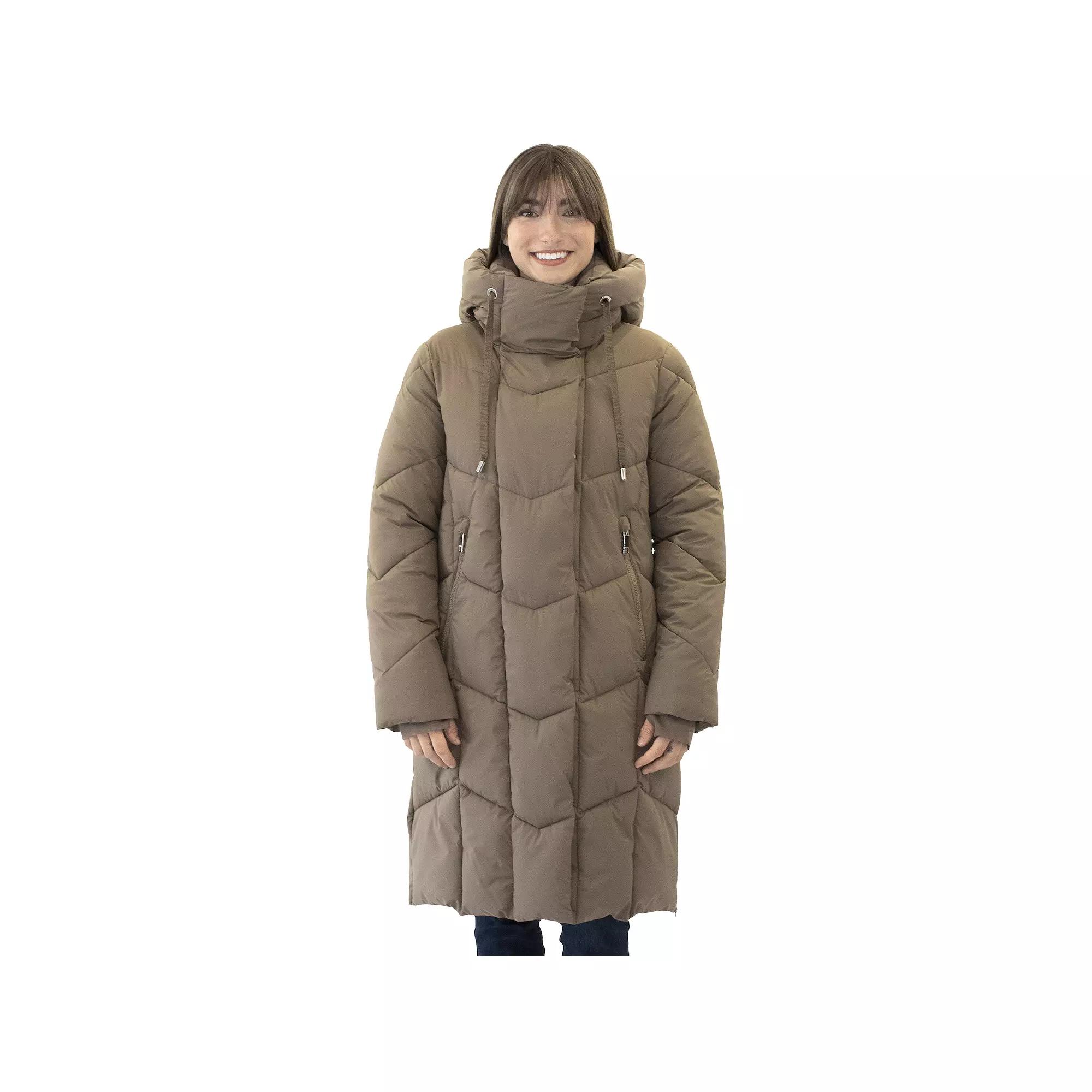 Stay cozy in style with this Nine West puffer coat that features an attached hood to shield you from chilly winds. With a front storm placket for extra warmth, two zipper pockets to stash your essentials, and knit cuffs with thumbholes for snug comfort, this coat is your new go-to for those brisk days. Click on this WOMEN'S GUIDE to find the perfect fit and more! - https://www.kohls.com/feature/womens-fit-guide.jsp. FEATURES: Tight woven construction for a cool hand feel, Attached hood for added warmth, Front storm placket with snaps and zipper, Two front zipper pockets for secure storage, Knit cuffs with thumbholes for extra comfort, Heavyweight design for superior insulation. FIT & SIZE: Regular fit, 40-in. length from shoulder to hem, Designed to hit just below the knees. MATERIAL & CARE: Body: polyester, Fill: polyester, Fully lined, Lining: polyester, Trim: rayon, nylon, spandex, Machine wash and tumble dry low, Trim: machine wash and tumble dry low. DETAILS: Snap & zipper front closure, Attached hood, Long sleeves, Thumb holes at cuffs, Two zip closure front pockets, Imported. Size: X Large. Color: Truffle. Gender: female. Age Group: adult. Material: POLY BLEND.