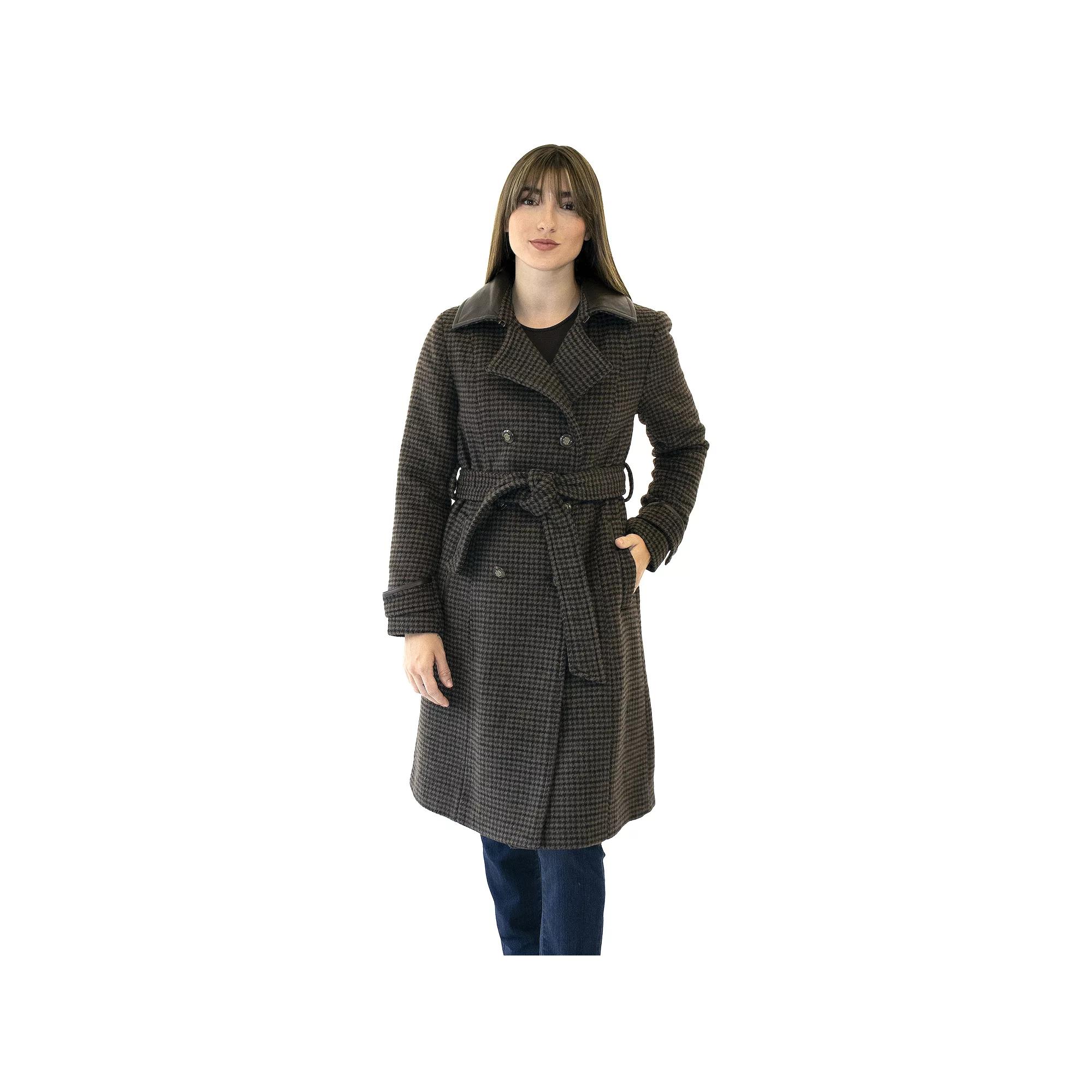 Step out in style with this chic Nine West coat that effortlessly combines sophistication and comfort. Featuring a notched collar and double-breasted button closures, plus pockets perfect for stashing your essentials, this fully lined favorite is sure to make you feel fabulous while the removable belt lets you switch up your look with ease. Click on this WOMEN'S GUIDE to find the perfect fit and more! - https://www.kohls.com/feature/womens-fit-guide.jsp. FEATURES: Notched collar design, Front double breasted button closures, Removable belt, Fully lined, Trim detail adds a layer of style, Midweight warmth rating. FIT & SIZE: 40-in. length from shoulder to hem, Designed to hit just below the knees. MATERIAL & CARE: Polyester, acrylic, polyurethane & wool, Dry clean. DETAILS: Button closure & front, Coordinating belt, Long sleeves, 2 Front side entry pockets, Imported. Size: Large. Color: Brown Houndsto. Gender: female. Age Group: adult. Pattern: houndstooth. Material: POLY BLEND.