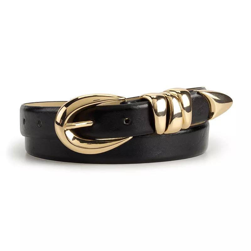 A lot of stylish touch to your look with this Women's Nine West Sculptural Hardware Panel Belt. How do you accessorize? Check out our ACCESSORIES GUIDE for essential tips to elevate your style with must-have accessories.A lot of stylish touch to your look with this Women's Nine West Sculptural Hardware Panel Belt. How do you accessorize? Check out our ACCESSORIES GUIDE for essential tips to elevate your style with must-have accessories.FEATURES Gold-toneFIT & SIZING SM: 32” MED: 34” LRG: 36” XLG: 38”FABRIC & CARE Polyurethane Spot clean Imported Size: X Large. Color: Black Gold. Gender: female. Age Group: adult.