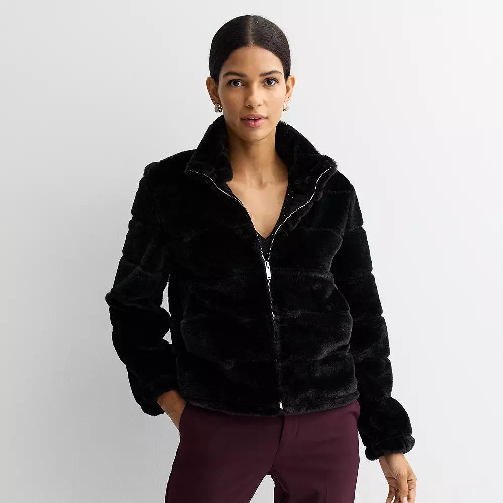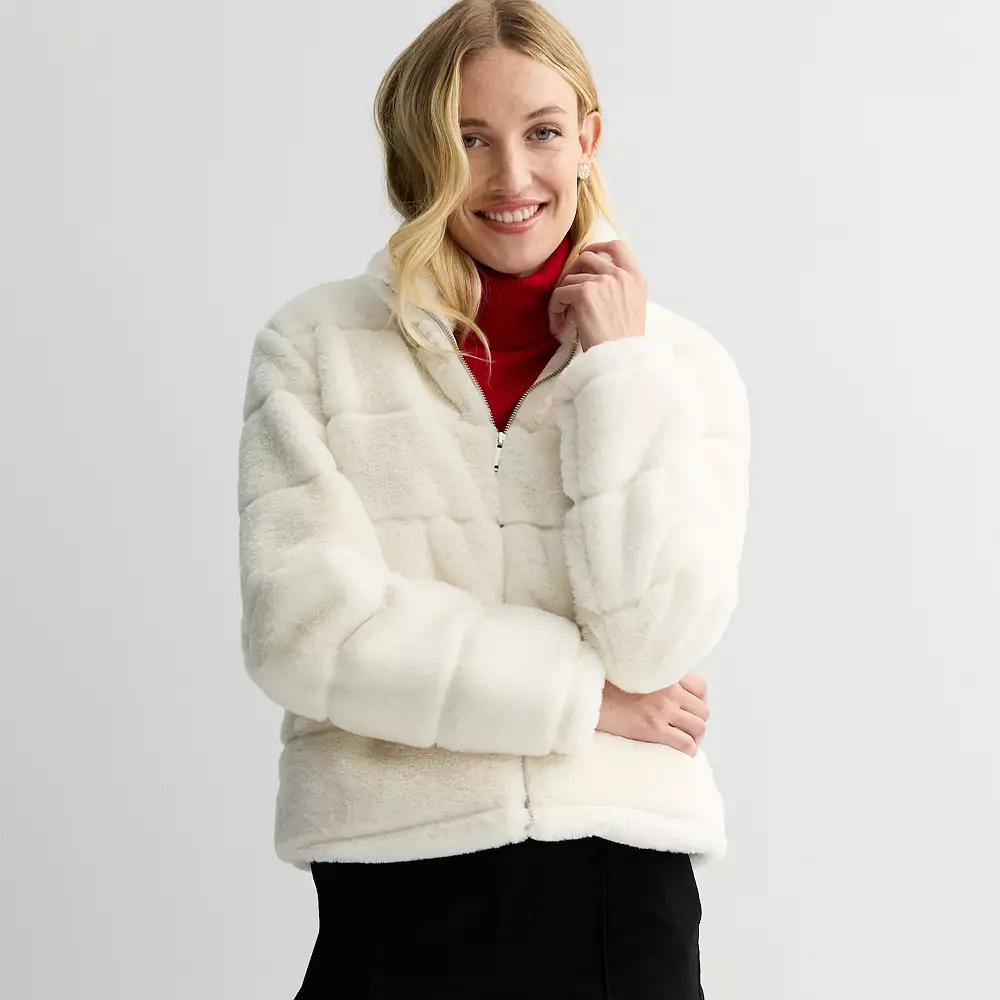 Elevate your outerwear game with this cozy and fashionable jacket from Nine West, perfect for layering on chilly days. Its stylish turtleneck design combines warmth and chic appeal, making it a versatile choice for any occasion. Click on this WOMEN'S GUIDE to find the perfect fit and more! - https://www.kohls.com/feature/womens-fit-guide.jsp. FEATURES: Cozy and fashionable design, Perfect for casual outings and lounging. FIT & SIZE: Comfortable fit, 24 1/2-in. length from shoulder to hem, Straight hem. DETAILS: Zipper front closure, Long, set-in sleeves, 2 front slash pockets, Imported. MATERIAL & CARE: Polyester, Faux fur: product contains faux fur, Machine wash. Size: Large. Color: Daisy Dew. Gender: female. Age Group: adult. Material: OTHER MATERIAL.