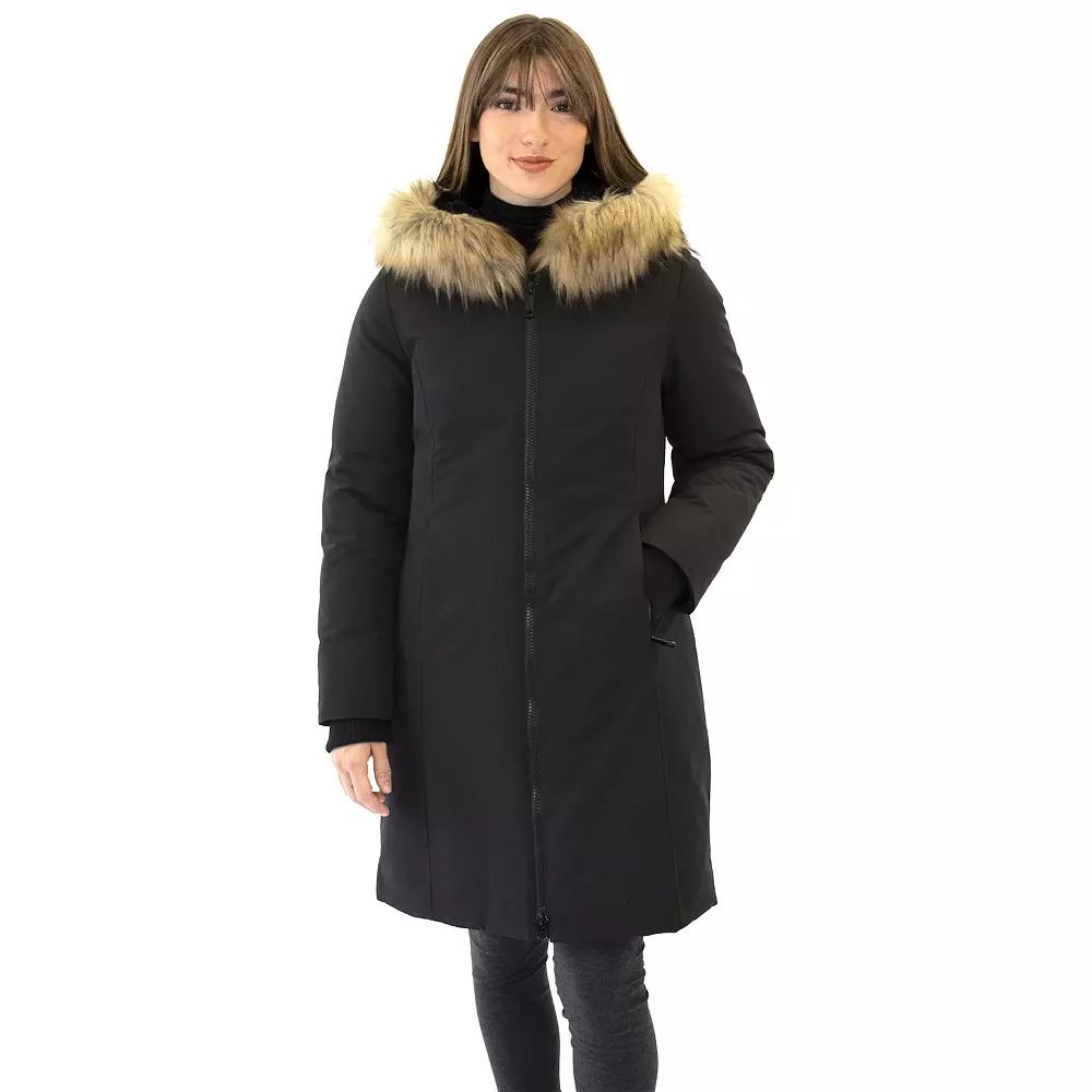 Stay cozy and stylish this winter with this chic hooded puffer coat from Nine West. Featuring a removable faux fur trim for versatile looks, a zip front closure for easy wearing, and knit cuffs to keep the chill out, this quilted companion is perfect for braving the cold while looking fabulous. Click on this WOMEN'S GUIDE to find the perfect fit and more! - https://www.kohls.com/feature/womens-fit-guide.jsp. FEATURES: Hooded design for added protection, Removable faux fur trim for versatile styling, Zip front closure for easy wear, Knit cuffs enhance warmth, Quilted inner lining for extra insulation, Water-resistant technology for wet weather protection, Heavyweight warmth rating for cold conditions. FIT & SIZE: True to size, 36-in. length from shoulder to hem, Designed to hit just below the knees. DETAILS: Zipper front closure, Attached hood with removable faux-fur trim, Long sleeves, 2 front pockets with zipper closure, Imported. MATERIAL & CARE: Body: 100% polyester, Fill: 100% polyester, Lining: 100% polyester, Trim: 72% acrylic, 28% modacrylic, Fully lined, Product contains faux fur, Machine wash and tumble dry low. Size: X Large. Color: Black. Gender: female. Age Group: adult. Material: POLY BLEND.