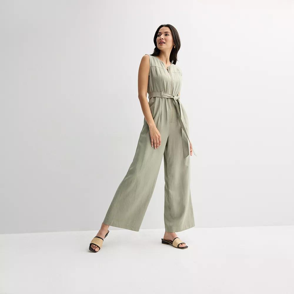 Embrace effortless charm in this breezy women's Nine West zip front jumpsuit. Click on this WOMEN'S GUIDE to find the perfect fit and more!Embrace effortless charm in this breezy women's Nine West zip front jumpsuit. Click on this WOMEN'S GUIDE to find the perfect fit and more!FEATURES U-neck Sleeveless Zipper closure 2 front pockets Coordinating beltFIT & SIZING Relaxed fit 56 1/4-in. from shoulder to hem 26 1/2-in. inseam 13 1/2-in. leg opening Flared leg openingFABRIC & CARE Lyocell, rayon, nylon Machine wash and line dry Imported Size: X Small. Color: Laughlin Green. Gender: female. Age Group: adult.