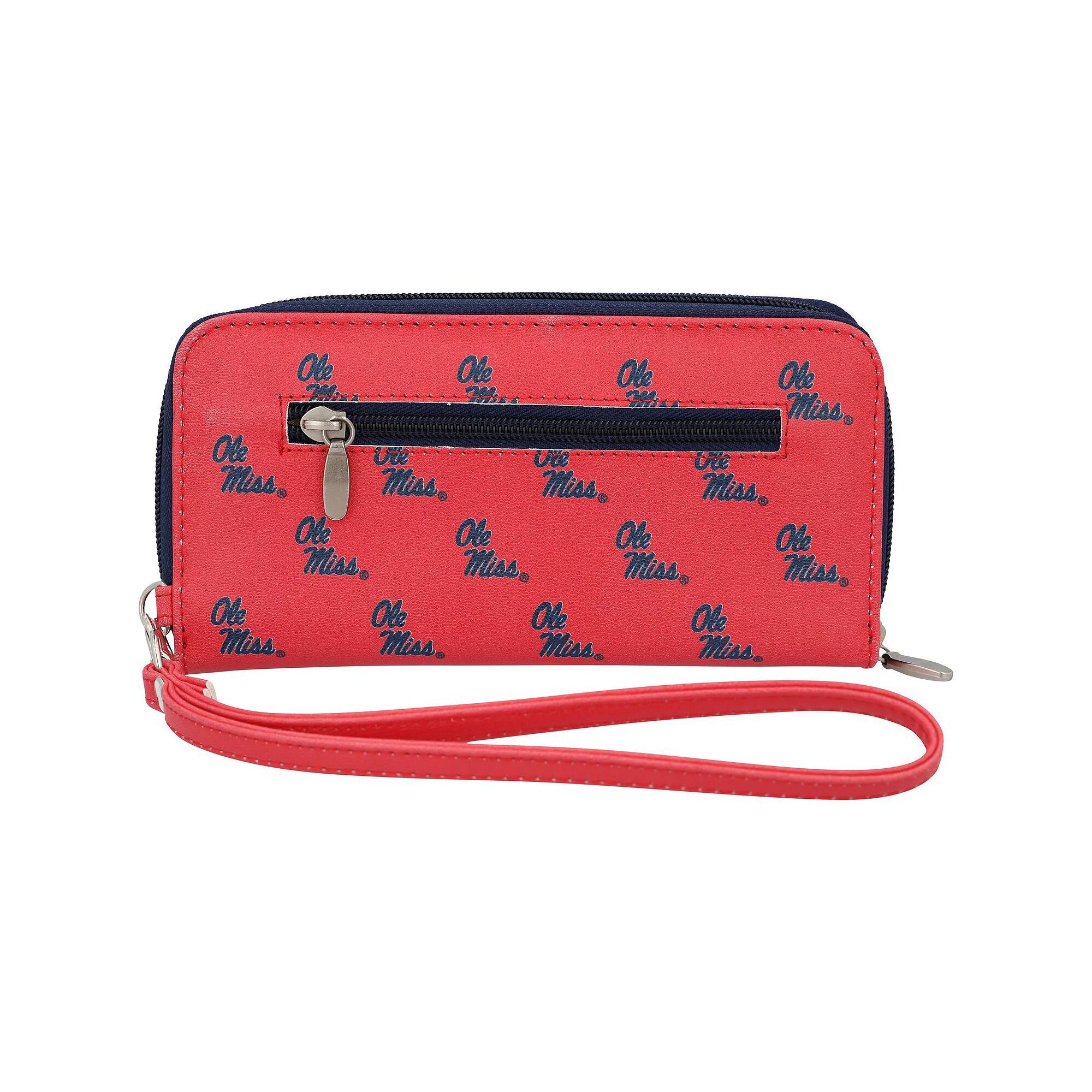 Even your every day accessories can show off unwavering Ole Miss Rebels spirit with this wristlet wallet. It features eight credit card slots, two bill slots and a cellphone slot, making it easy to carry all of your game day essentials. The zip-around closure helps keep your valuables safe while you're cheering on the Ole Miss Rebels.Even your every day accessories can show off unwavering Ole Miss Rebels spirit with this wristlet wallet. It features eight credit card slots, two bill slots and a cellphone slot, making it easy to carry all of your game day essentials. The zip-around closure helps keep your valuables safe while you're cheering on the Ole Miss Rebels.Officially licensedMaterial: 100% Synthetic LeatherImportedEight credit card slotsOne exterior zip pocketMeasures approx. 4'' x 1'' x 7.5''One cellphone slotDetachable wrist strap with lobster claw closureBrand: Eagles WingsPrinted graphicsWipe clean with a damp clothOne interior zip pocketZip-around closureTwo bill slots Size: One Size. Gender: female. Age Group: adult.