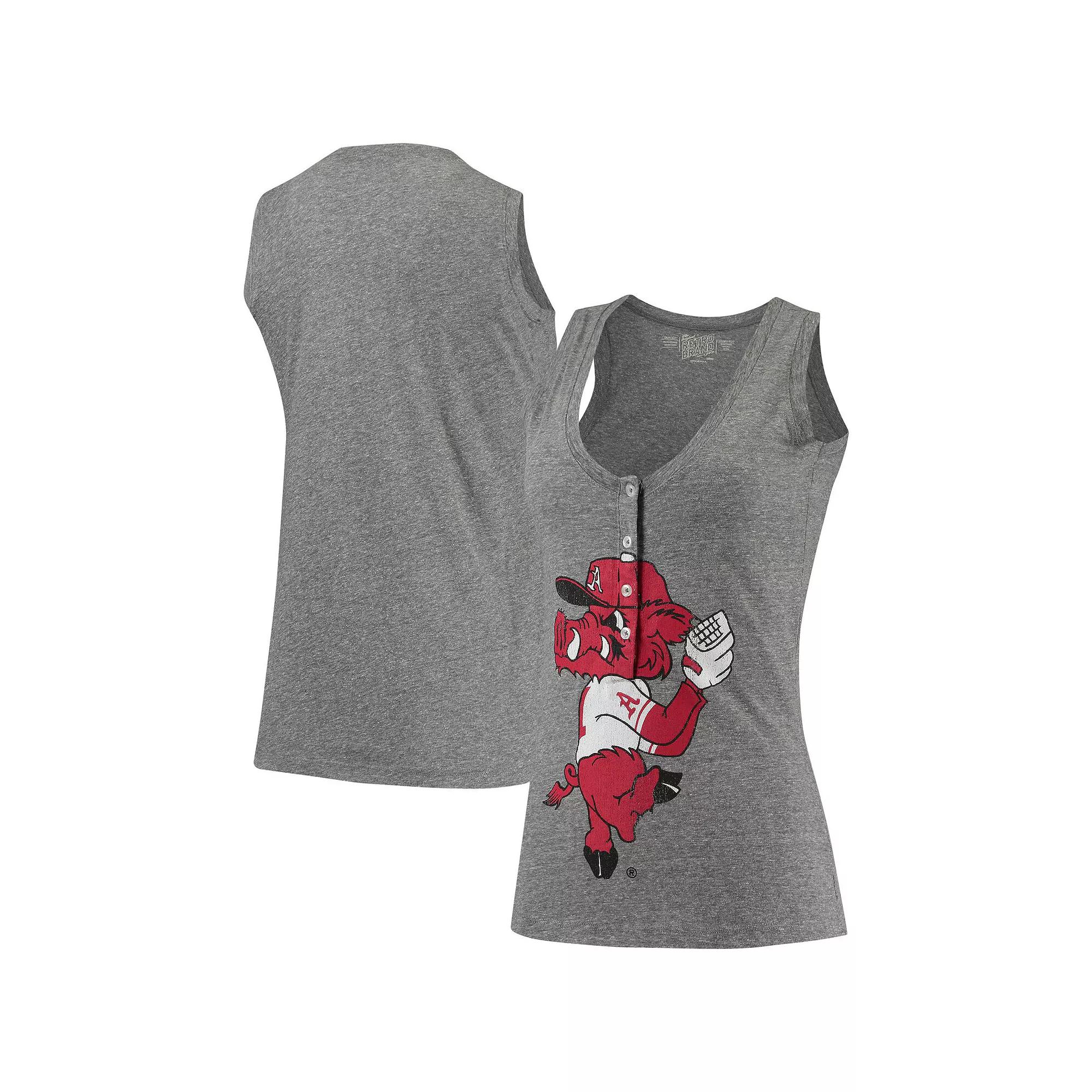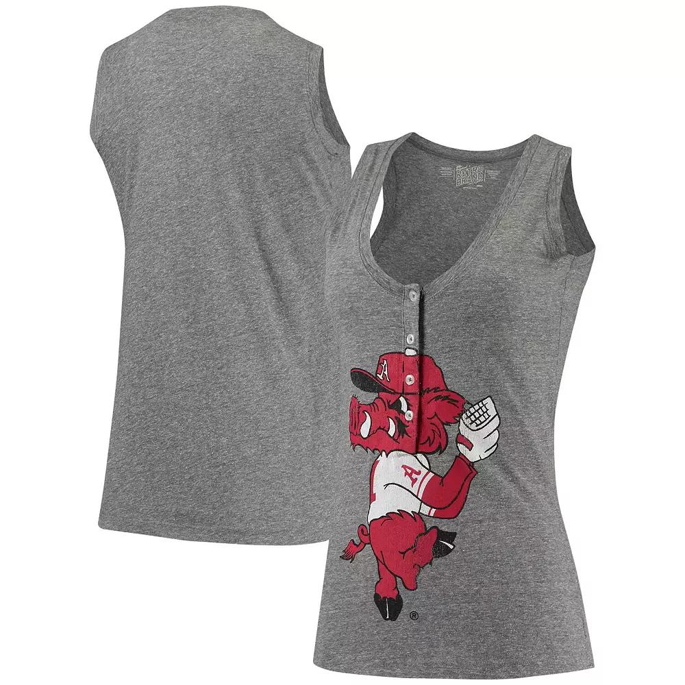 Exhibit your passion for the Arkansas Razorbacks by wearing this Relaxed Henley tank top from Original Retro Brand. It features a soft tri-blend material, a lower V-neck design with four buttons and vintage-like Arkansas Razorbacks graphics. This tank is a comfortable and stylish way to show your collegiate support on hot days,