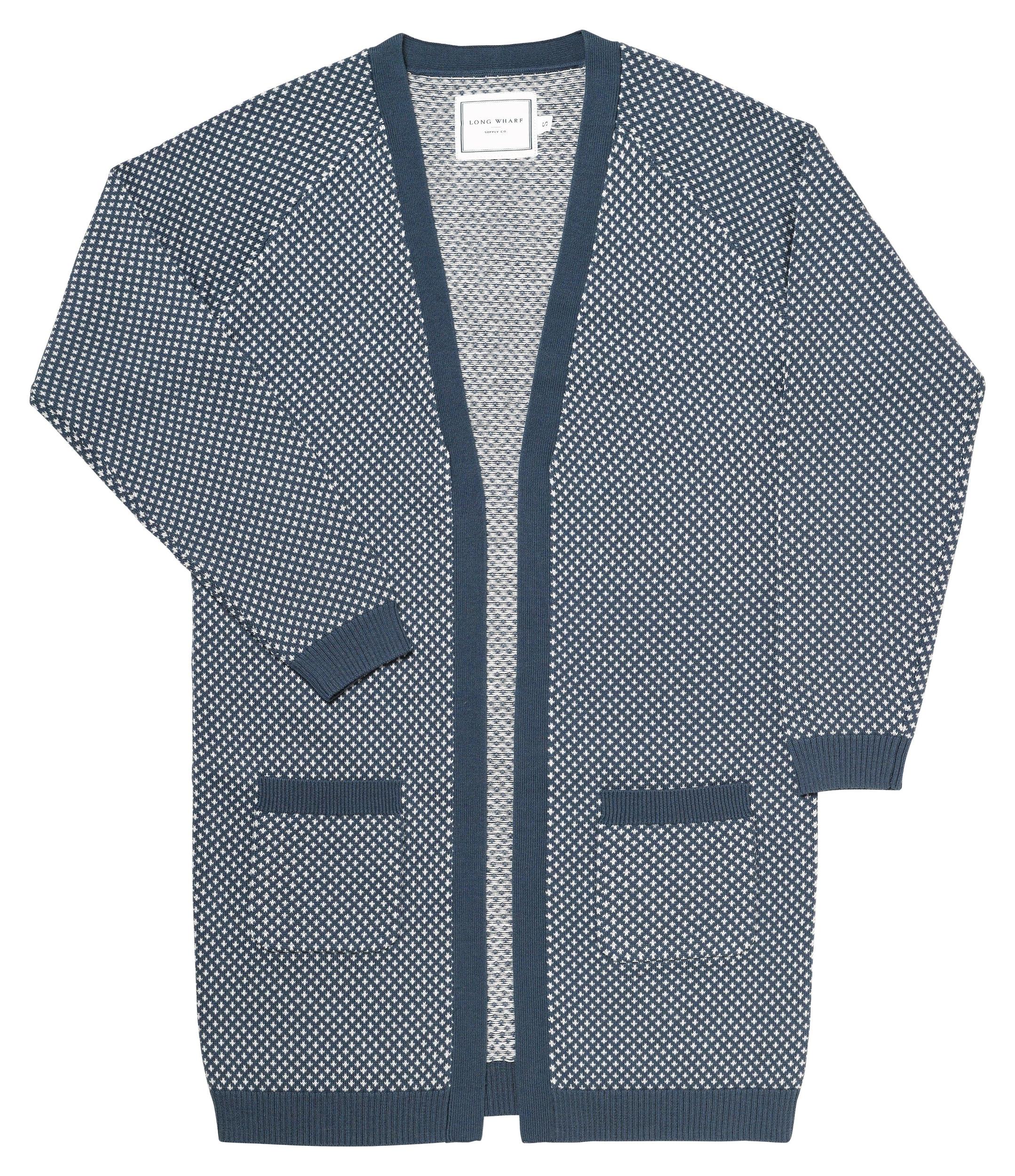 The first fisherman's sweaters made from a soft blend of recycled oyster shells, recycled water bottles, and cotton. Inspired by vintage style and classic comfort, these garments boast thick ribbed cuffs and collars to promote thermal regulation and warmth for windy days among the great outdoors. Located on Nantucket Sound, the marshes and waterways of Osterville may be some of the most quiet and serene places on Earth. The area was an early center for harvesting wild oysters on Cape Cod and was originally called Oysterville, but the village was misspelled on a map and thus became Osterville. Featuring our signature birdseye pattern, the Osterville SeaWell™ Cardigan is crafted for versatility whether your trip calls for an evening boat ride or a windy walk along the shoreline. Features: Women's modern fit Ribbed cuffs and collars SeaWell™ blend of recycled materials & natural yarns 60% rPet derived from Recycled Oyster Shells & Water Bottles, 40% Cotton Imported Cleaning & care: Hand wash when possible. Turn inside out to machine wash cold & gentle. Lay flat to dry.