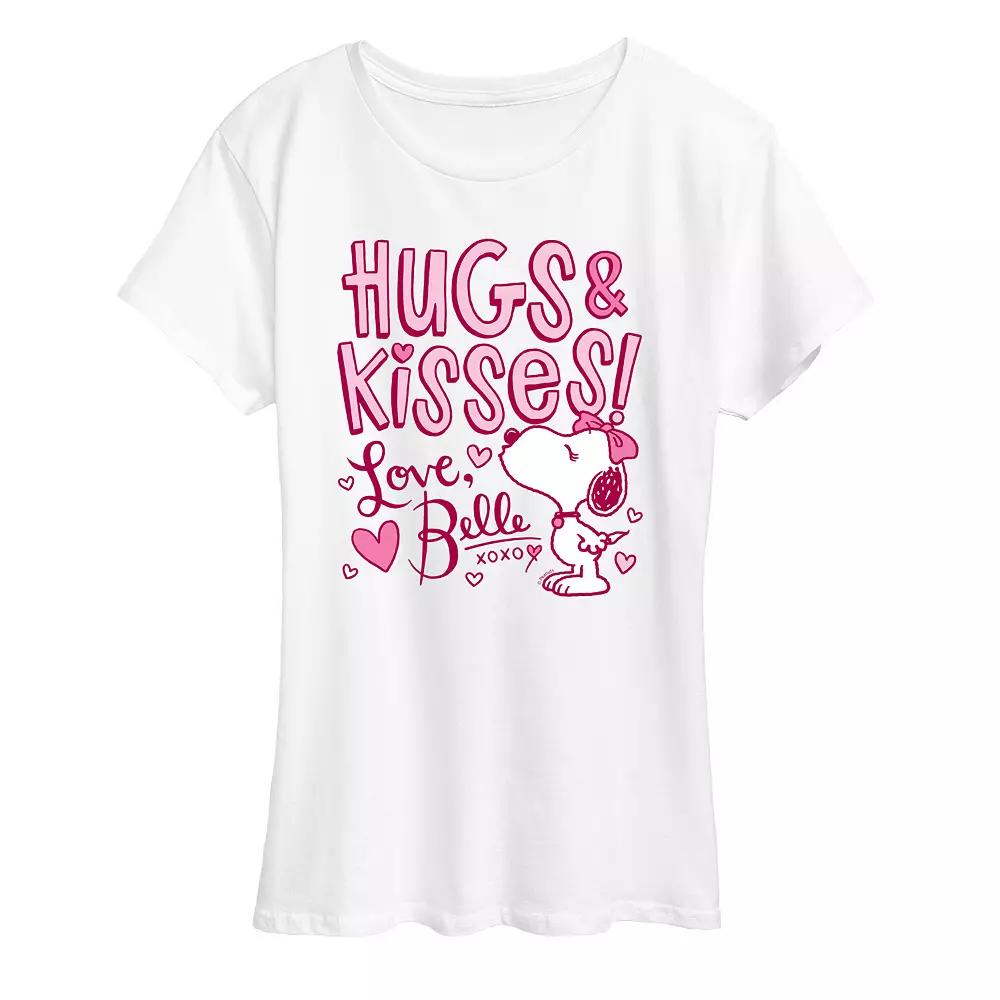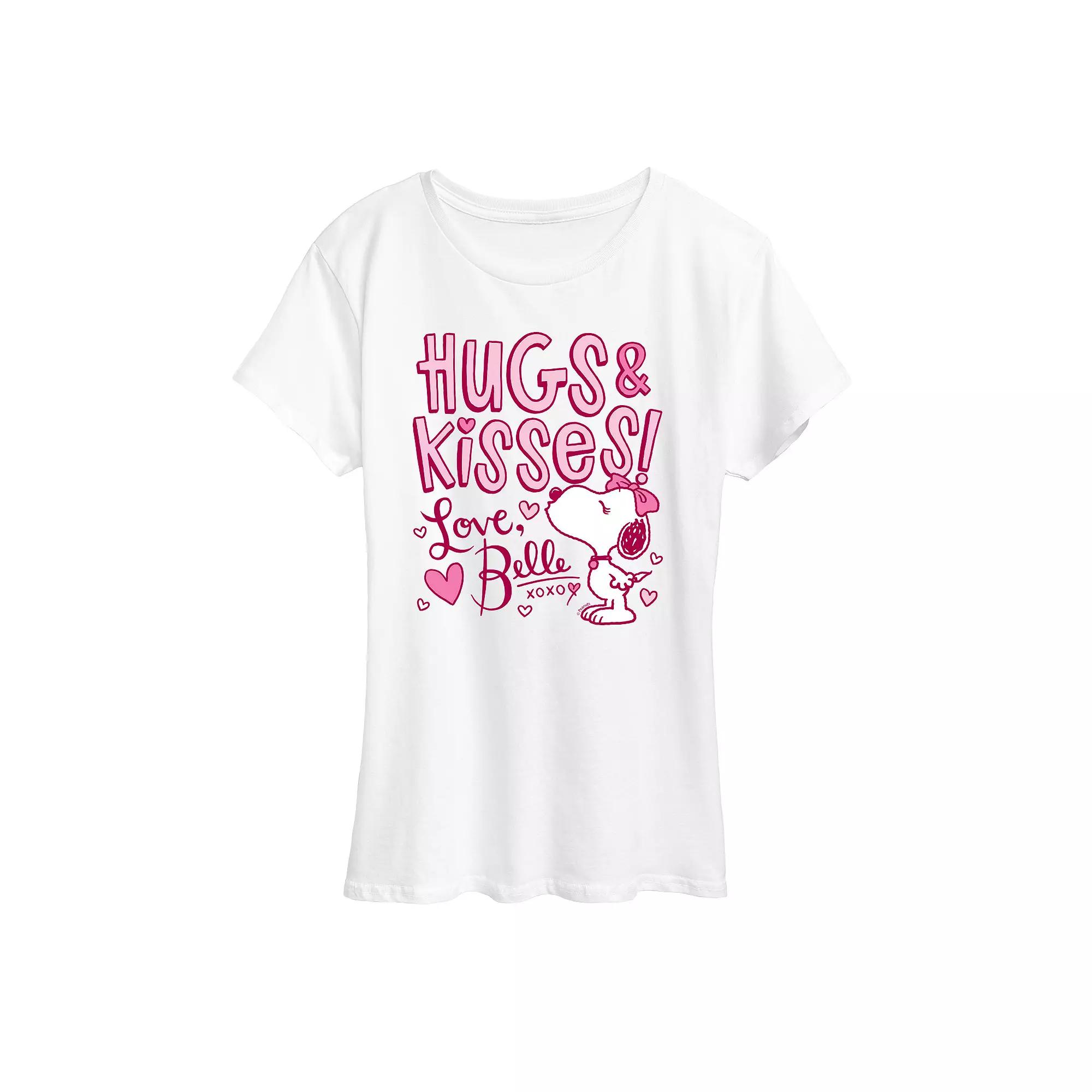 She will love showing off her style with this Women's Peanuts Belle Hugs & Kisses Graphic Tee.FEATURES Short sleeves ScoopneckFABRIC & CARE Light Gray and Heather Colors: Cotton/Polyester; Solid Colors: Cotton Machine wash Imported Size: Large. Color: White. Gender: female. Age Group: adult.