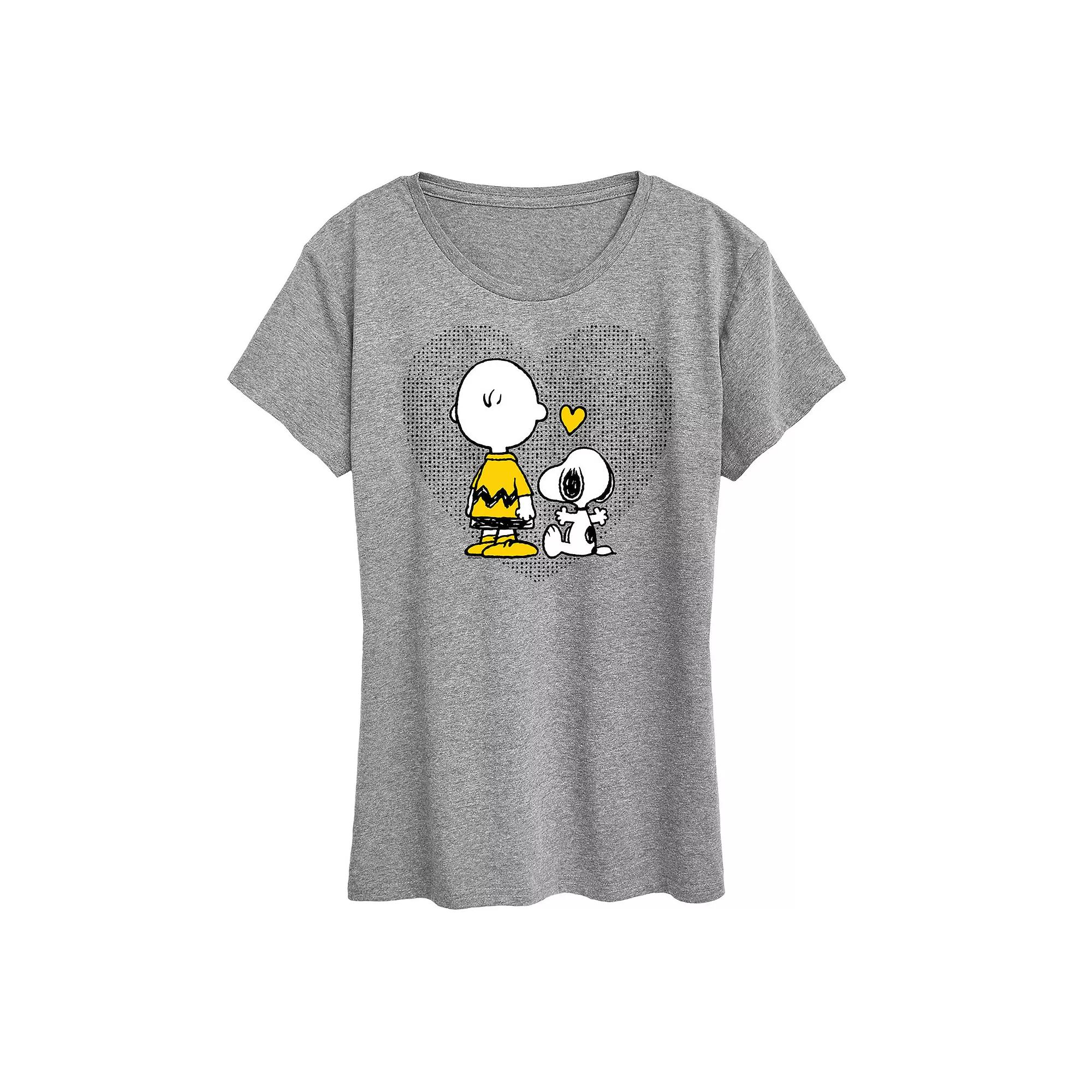 She will love showing off her style with this Womens Peanuts Charlie Brown & Snoopy Dot Heart Graphic Tee. FEATURES Short sleeves CrewneckFABRIC & CARE Solid Color: Cotton ; Heather Colors: Cotton/Polyester Machine wash Imported Size: Xxl. Color: Med Grey. Gender: female. Age Group: kids.