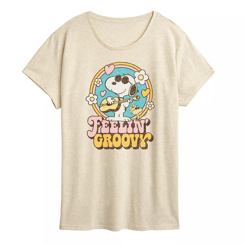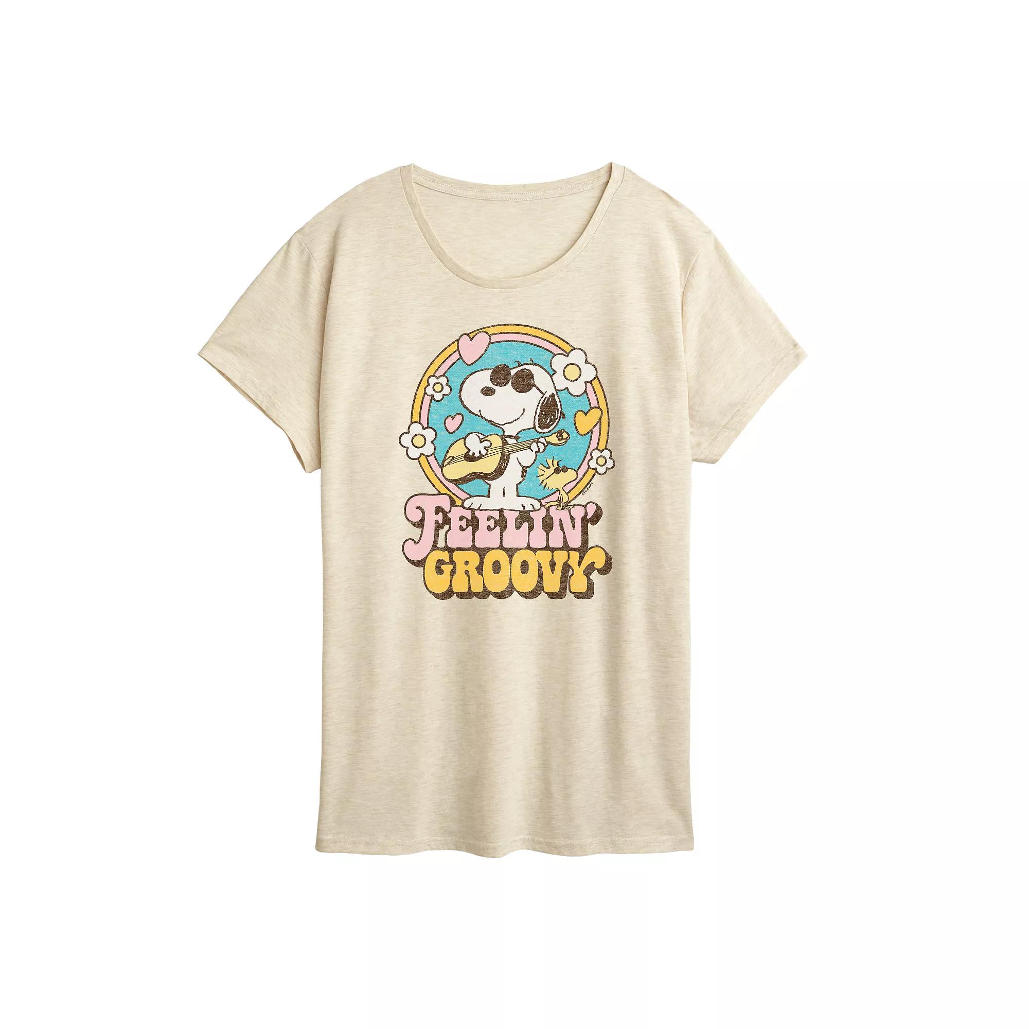 She will love showing off her style with this Womens Peanuts Snoopy Feelin Groovy Graphic Tee. FEATURES Short sleeves CrewneckFABRIC & CARE Solid Color: Cotton ; Heather Colors: Cotton/Polyester Machine wash Imported Size: Medium. Color: Beige. Gender: female. Age Group: adult.