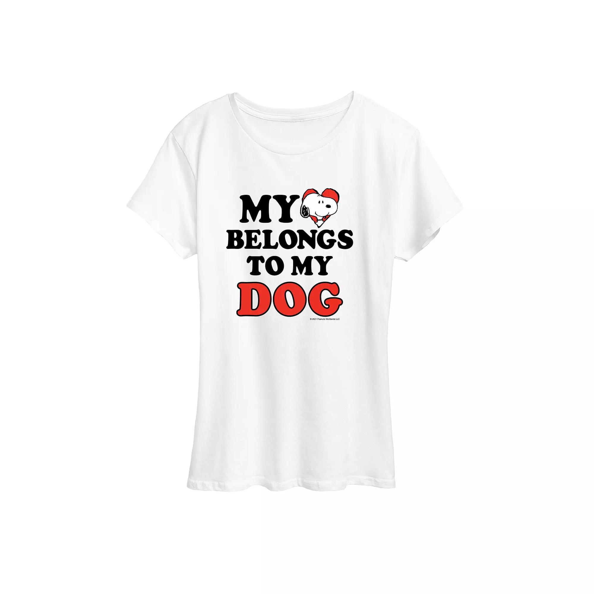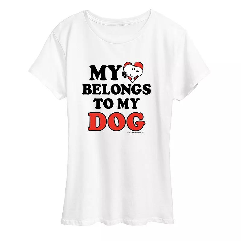 White Snoopy My Heart Belongs to My Dog Graphic Tee - Women & Plus. Casual crewneck tee with a charming Snoopy graphic. Full graphic text: My (image of heart) belongs to my dog.Size S: 26 long from high point of shoulder to hem100% cottonMachine wash; tumble dryImported, screen printed in the USA