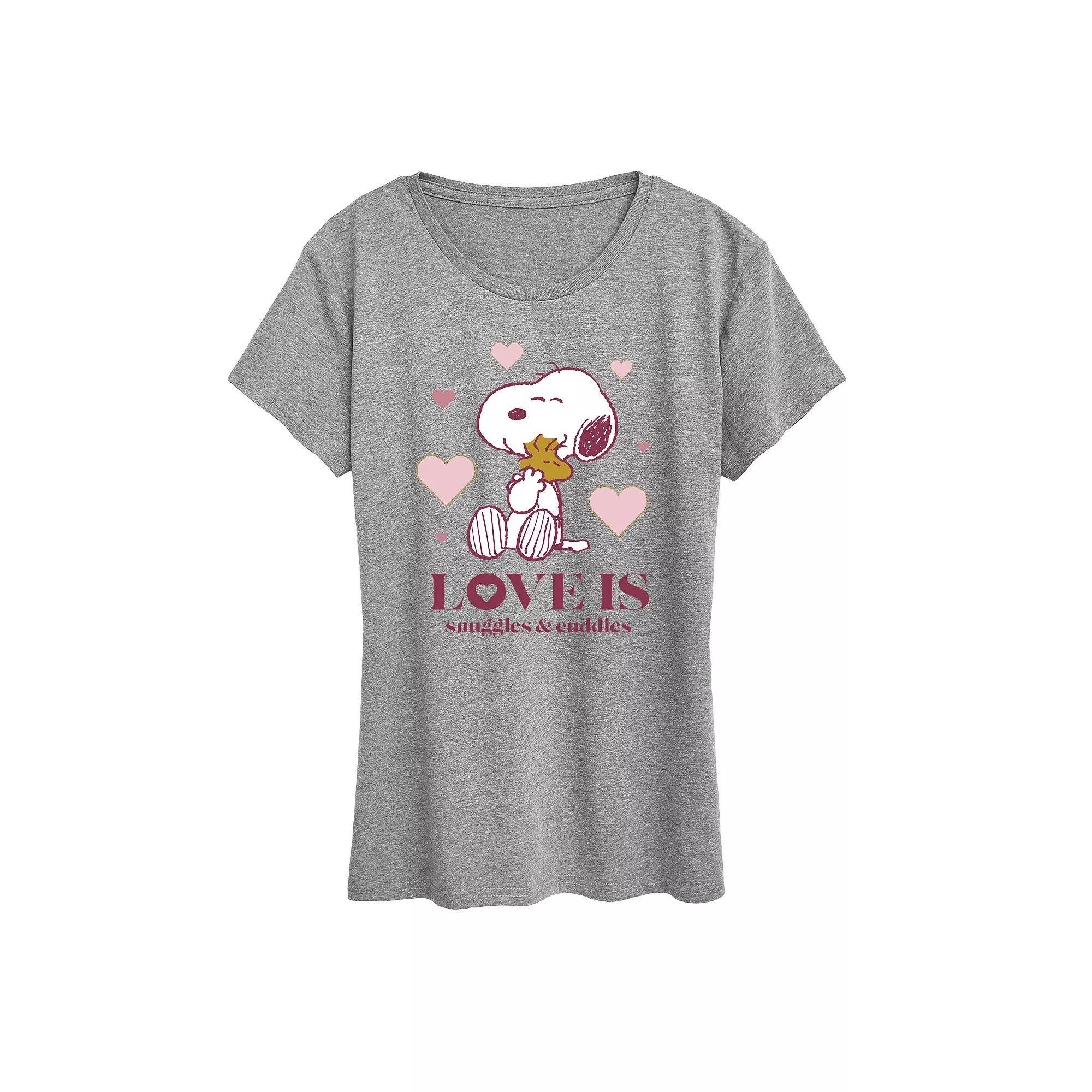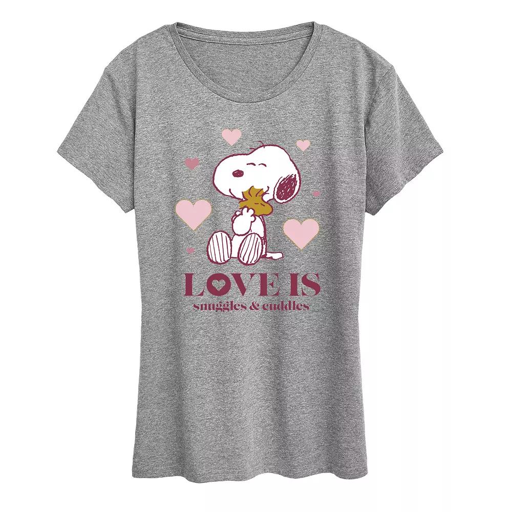 She will love showing off her style with this Womens Peanuts Snoopy & Woodstock Snuggles Graphic Tee. FEATURES Short sleeves CrewneckFABRIC & CARE Solid Color: Cotton ; Heather Colors: Cotton/Polyester Machine wash Imported Size: Large. Color: Med Grey. Gender: female. Age Group: adult.