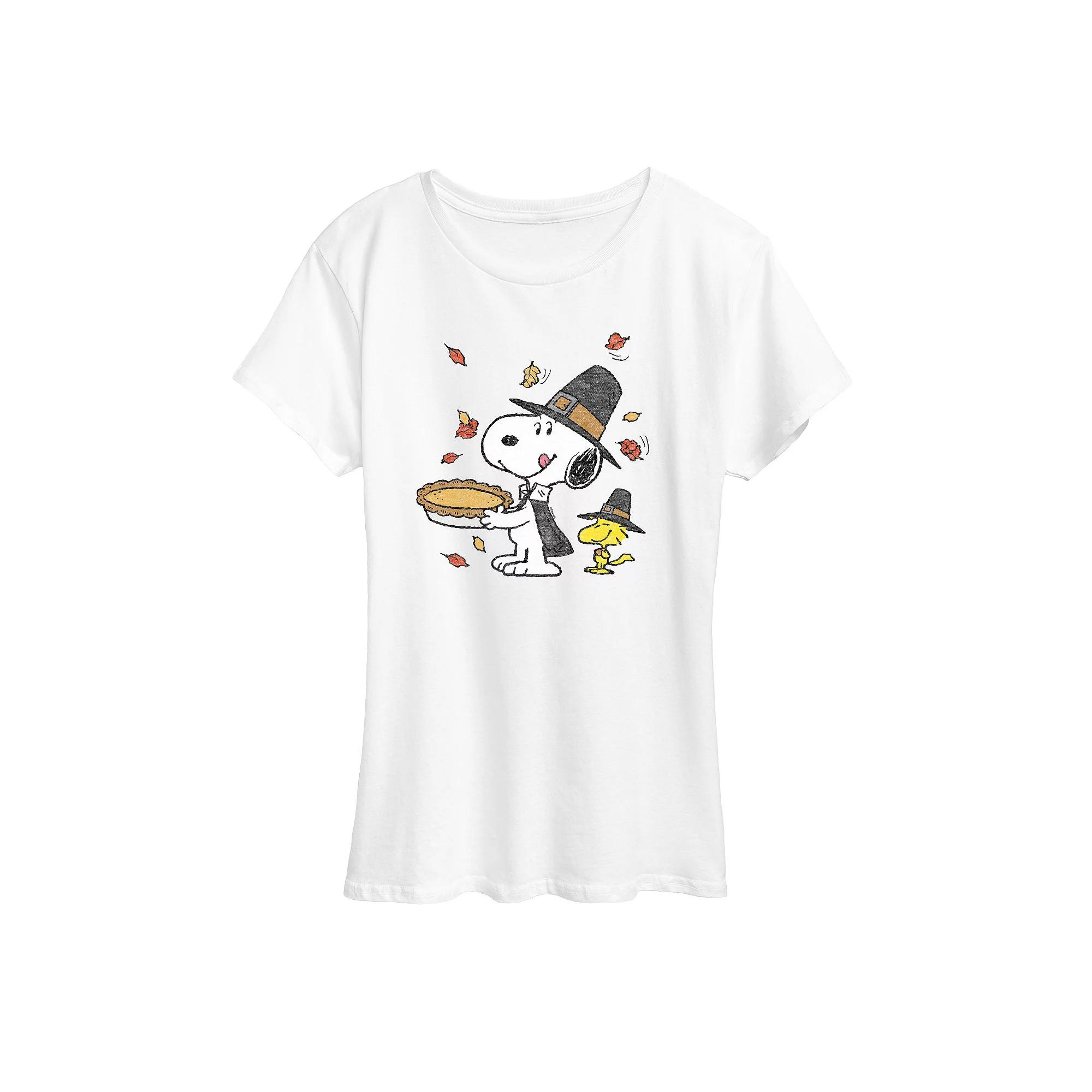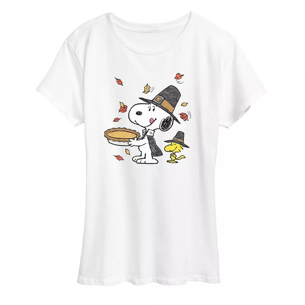 Youll love the look of this womens Peanuts Snoopy & Woodstock Thanksgiving Scene graphic tee. Youll love the look of this womens Peanuts Snoopy & Woodstock Thanksgiving Scene graphic tee. FEATURES Short sleeves CrewneckFABRIC & CARE Solids: cotton; Heather: cotton, polyester Machine wash Imported Size: Xxl. Color: White. Gender: female. Age Group: adult.