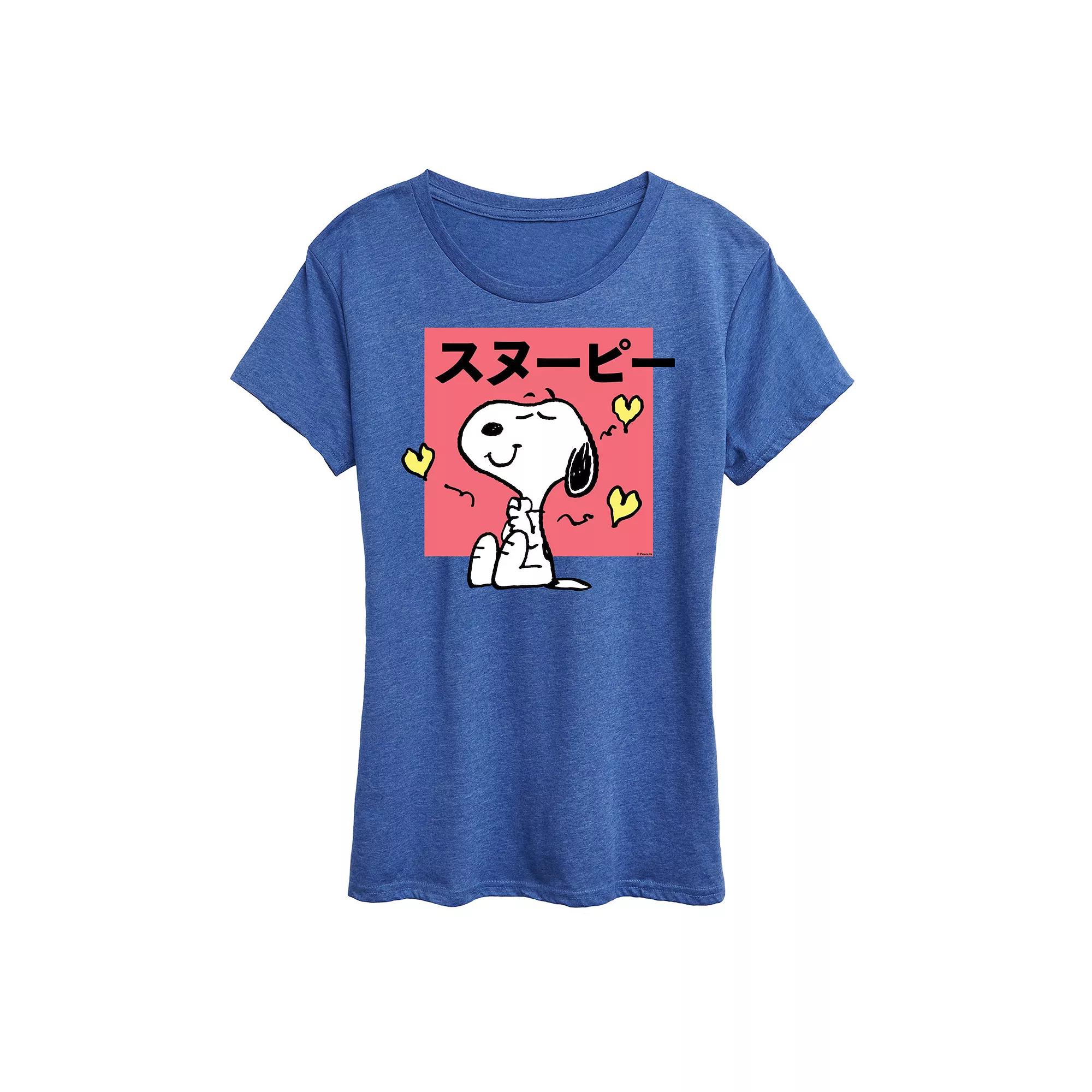 She will love showing off her style with this Womens Peanuts Tokyo Snoopy Hearts Graphic Tee. FEATURES Short sleeves CrewneckFABRIC & CARE Solid Color: Cotton ; Heather Colors: Cotton/Polyester Machine wash Imported Size: Medium. Color: Med Blue. Gender: female. Age Group: kids.