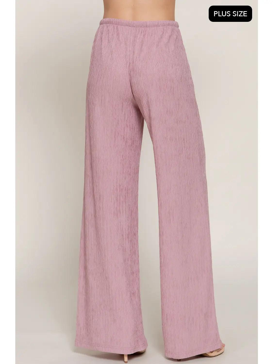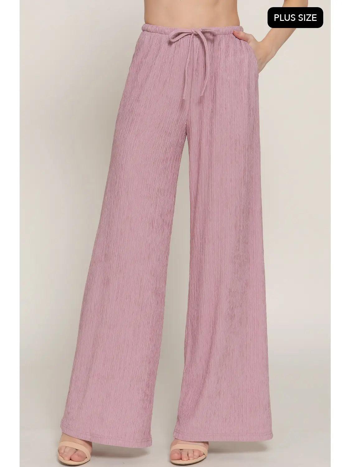 The Pink Crinkle Pants feature a stretch twill fabric blend of 95% polyester and 5% spandex, ensuring ultimate comfort and flexibility. The waistband includes a drawstring for a customizable fit. These versatile pants are perfect for new arrivals, whether you're staying active or simply looking for a comfortable yet stylish option. With a flattering flare design and available in plus sizes, these pants are a must-have for your wardrobe. Perfect for vacations, or just enjoying a warm spring or summer day, these pants offer both style and comfort.