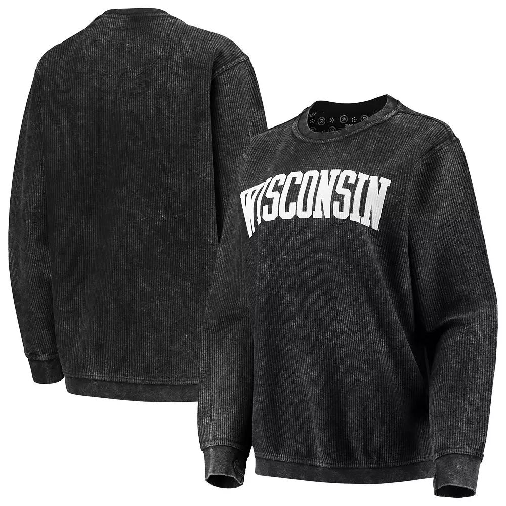 Theres no need to cover up your festive game day getup when youve got this Comfy Cord vintage-like Wash Basic Arch pullover sweatshirt from Pressbox. It features bold Wisconsin Badgers graphics and a lightweight design, so its easy to bring with you on the go. Every time you slip this fun sweatshirt on, youll send good vibes toward the Wisconsin Badgers.