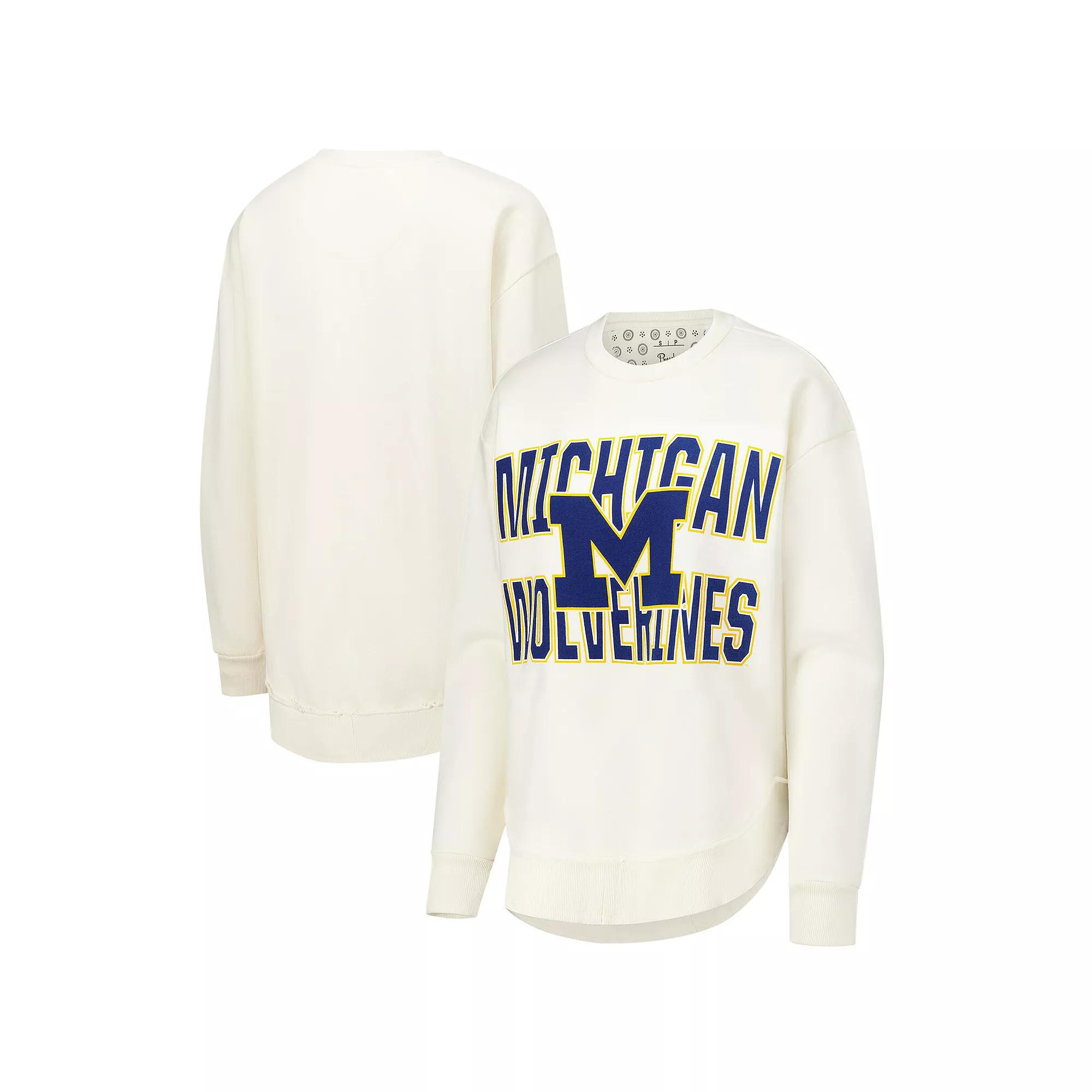 Cozy up for game day in this Michigan Wolverines Poncho Fleece Crew Sweatshirt from Pressbox. This incredibly soft sweatshirt features a cozy fleece lining, making it the perfect choice for those chilly game days at the Big House or relaxing at home. The screen-print graphics of the team logo sitting atop the team wordmark proudly display your Wolverines spirit.Cozy up for game day in this Michigan Wolverines Poncho Fleece Crew Sweatshirt from Pressbox. This incredibly soft sweatshirt features a cozy fleece lining, making it the perfect choice for those chilly game days at the Big House or relaxing at home. The screen-print graphics of the team logo sitting atop the team wordmark proudly display your Wolverines spirit.PRODUCT FEATURESMachine wash with garment inside out, tumble dry lowImportedPulloverFleece lining for an added layer of warmthMidweight sweatshirt suitable for moderate temperaturesOfficially licensedCrew neckMaterial: 52% Polyester/48% CottonRounded droptail hem with unfinished seamsLong sleeveBrand: PressboxScreen print graphics of team logo sitting atop team wordmark Color: Beige. Gender: female. Age Group: adult.