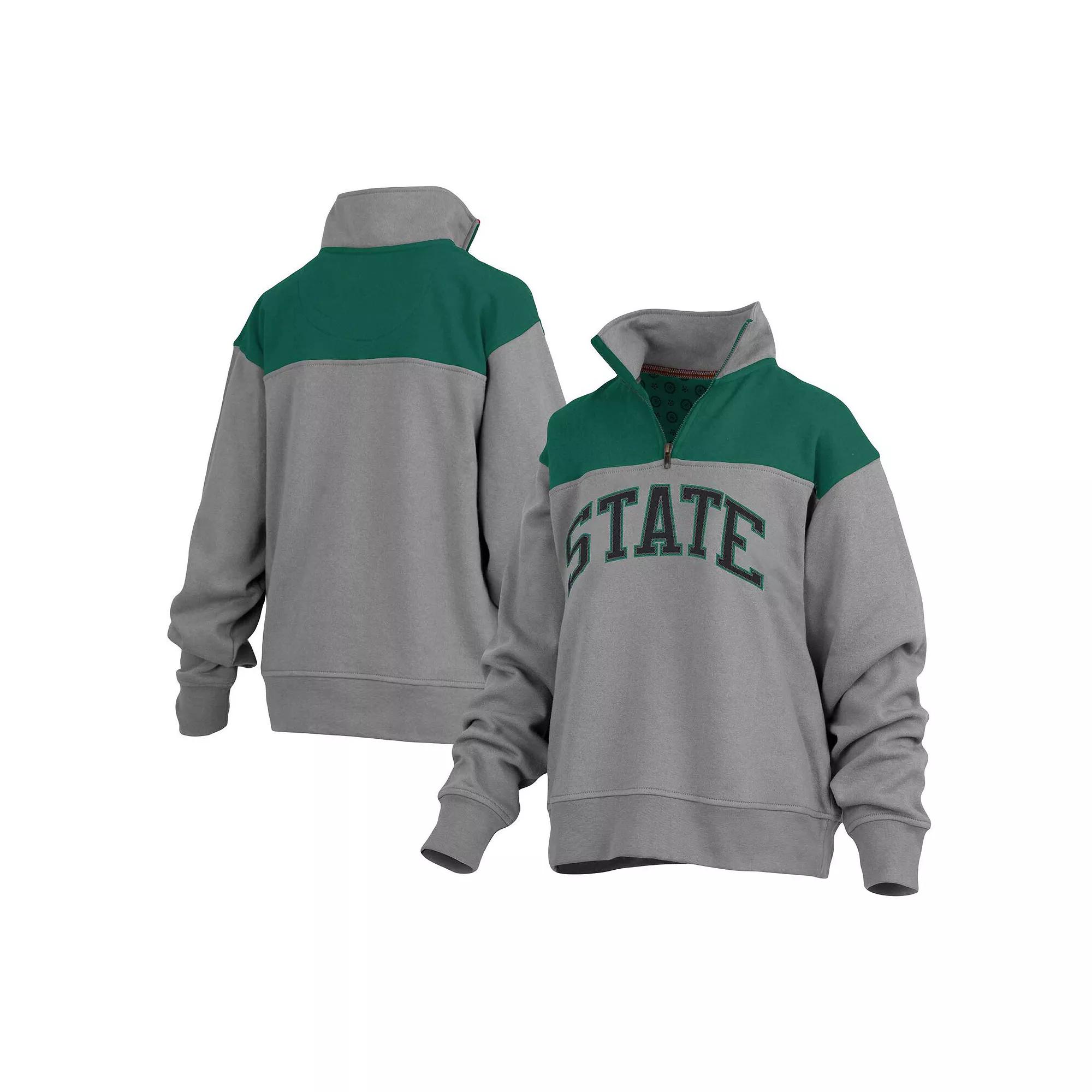 Women's Pressbox Gray Michigan State Spartans Avon Fleece Quarter-Zip Jacket,