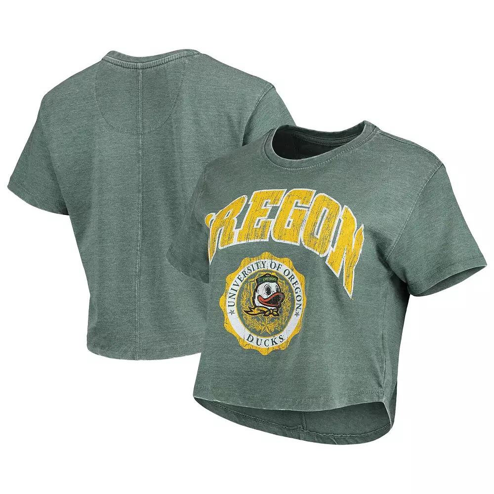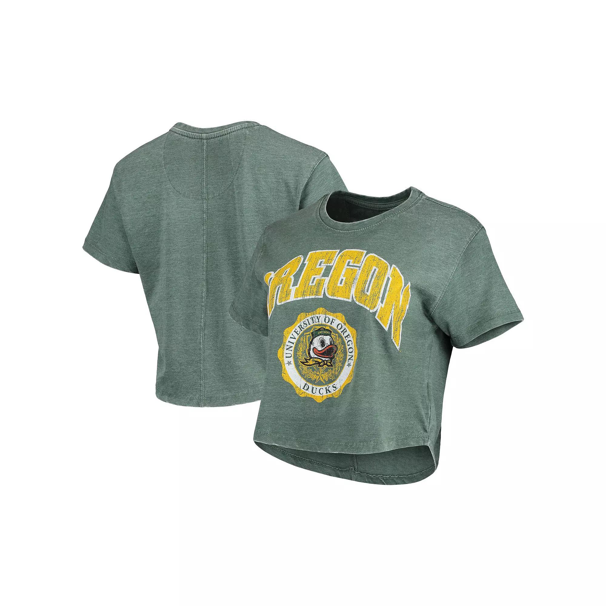 Step up your Oregon Ducks wardrobe in this flattering Edith Vintage Burnout Crop T-shirt from Pressbox! This vintage wash tee features distressed Oregon Ducks graphics to help you stand out in any crowd. Comfortable and fashionable, this trendy tee is a great and easy way to exemplify your team pride while adding a fun flair to your look.Step up your Oregon Ducks wardrobe in this flattering Edith Vintage Burnout Crop T-shirt from Pressbox! This vintage wash tee features distressed Oregon Ducks graphics to help you stand out in any crowd. Comfortable and fashionable, this trendy tee is a great and easy way to exemplify your team pride while adding a fun flair to your look.Brand: PressboxBurnout designCrew neckCropped teeDesign may varyDistressed screen print graphicsImportedMachine wash, tumble dry lowMaterial: 55% Cotton/45% PolyesterOfficially licensedRounded drop tail hemScreen print graphicsShort sleeveTagless CollarVintage wash Color: UOO GREEN. Gender: female. Age Group: adult.