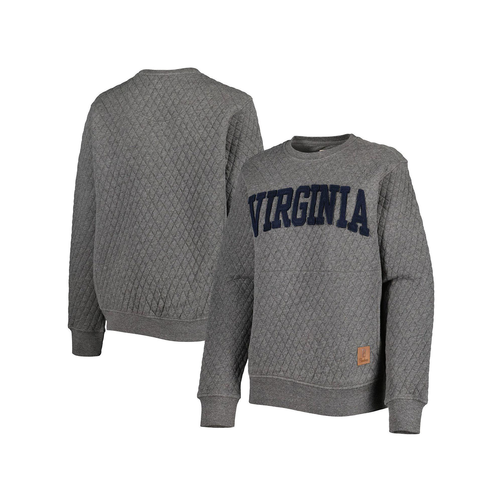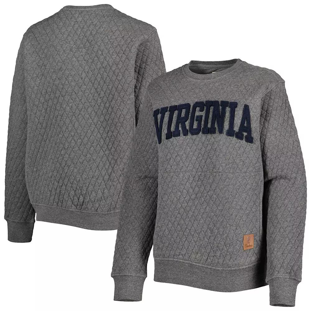 Get a comforting feel with the homemade look of this Virginia Cavaliers Moose pullover sweatshirt from Pressbox. It features a quilted diamond pattern and the team's name stitched in felt appliques across the front. The pouch pocket also provides a quick way to warm up your hands on Virginia Cavaliers game days. Imported. Midweight sweatshirt suitable for moderate temperatures. Crew neck. Officially licensed. Brand: Pressbox. Machine wash, tumble dry low. Material: 75% Polyester/25% Cotton Body; 50% Polyester/50% Cotton Side Panels; 100% Polyester Fill. Long sleeve. Stitched felt applique. Side insets. Pullover. Front pouch pocket. Quilted diamond design. Color: Grey. Gender: female. Age Group: adult.
