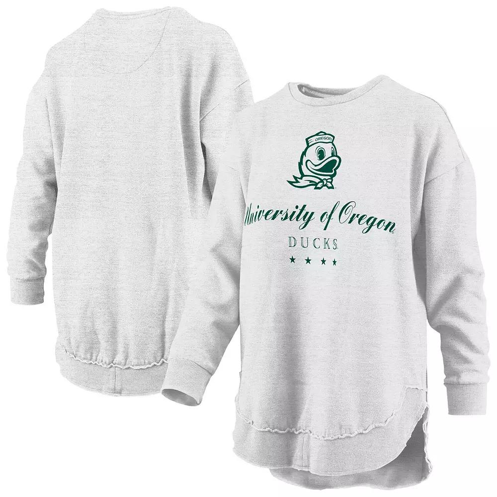 Cozy up in style and show your Oregon Ducks pride with the Pressbox Field Day Melange Poncho Pullover Sweatshirt. The washed fabric offers a vintage look and feel, while the fleece lining provides exceptional warmth and comfort. Plus, the screen printed team graphics make it clear that your heart belongs to the Oregon Ducks.Cozy up in style and show your Oregon Ducks pride with the Pressbox Field Day Melange Poncho Pullover Sweatshirt. The washed fabric offers a vintage look and feel, while the fleece lining provides exceptional warmth and comfort. Plus, the screen printed team graphics make it clear that your heart belongs to the Oregon Ducks.PRODUCT FEATURESFleece liningMaterial: 60% Cotton/40% PolyesterImportedCrew neckOfficially licensedPulloverMachine wash, tumble dry lowMidweight sweatshirt suitable for moderate temperaturesLong sleeveWashed fabric for a vintage lookBrand: PressboxRounded droptail hem with raw edgeScreen print team graphics Color: Grey. Gender: female. Age Group: adult.