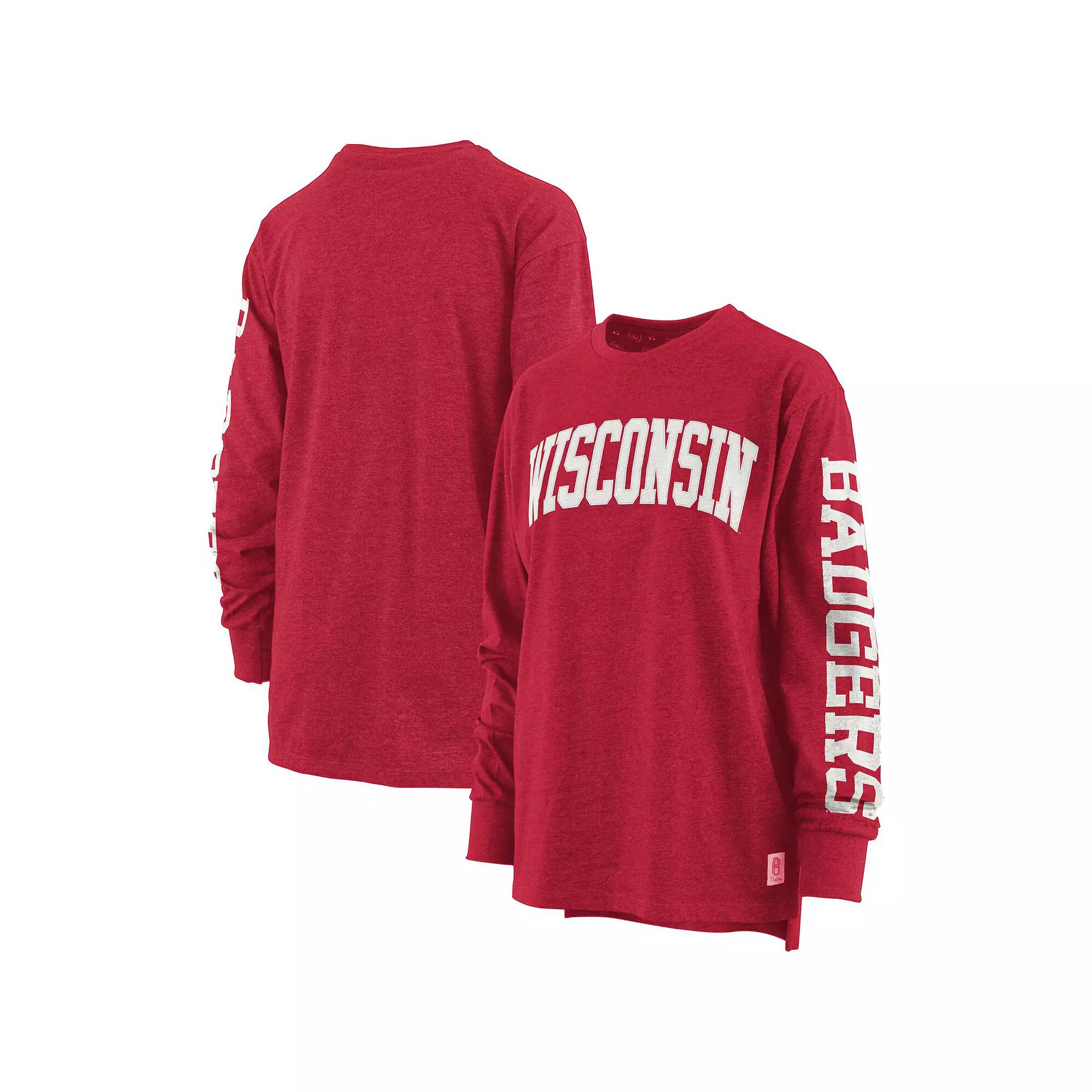 Your pride in your school will be easy to spot, thanks to the larger-than-life wordmark across the chest of this Wisconsin Badgers Two-Hit Canyon T-shirt from Pressbox. The school's nickname is shown down the left sleeve, and the oversized design is tailored for your comfort on game day as you proudly support your favorite team. Brand: Pressbox. Officially licensed. Imported. Machine wash, tumble dry low. Tagless Collar. Droptail hem with side splits. Screen print graphics. Long sleeve. Heathered fabric. Applique. Material: 60% Cotton/40% Polyester. Thumbhole in sleeve cuffs. Crew neck. Size: XL. Gender: female. Age Group: adult.