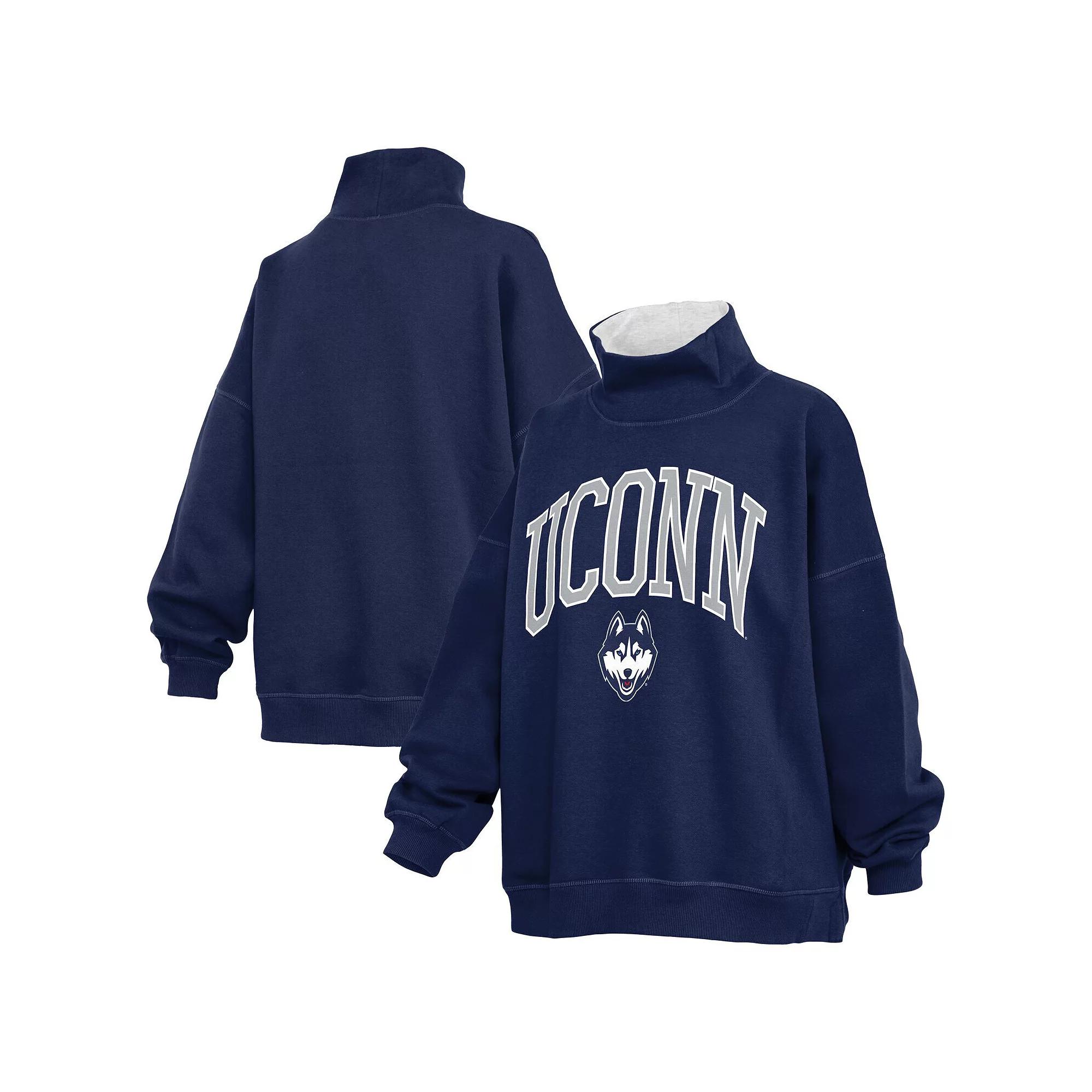 Embrace the game-day spirit with this UConn Huskies Oversized Mock Neck Sweatshirt from Pressbox. Designed for ultimate comfort, its oversized fit with dropped shoulders creates a relaxed, modern silhouette that's perfect for layering. The midweight fabric blend provides cozy warmth on cooler days, while the printed wordmark and logo across the chest boldly display your UConn Huskies devotion. It's the ultimate way to stay spirited and stylish all season long. Brand: Pressbox. Long sleeve. Imported. Machine wash, line dry. Mock neck. Printed wordmark and logo across the chest. Material: 65% Cotton/35% Polyester. Pullover. Oversized fit with dropped shoulders for a loose drape. Midweight sweatshirt suited for moderate temperatures. Officially licensed. Rib-knit cuffs and hem provide a snug fit. Size: XXL. Color: Navy. Gender: female. Age Group: adult.