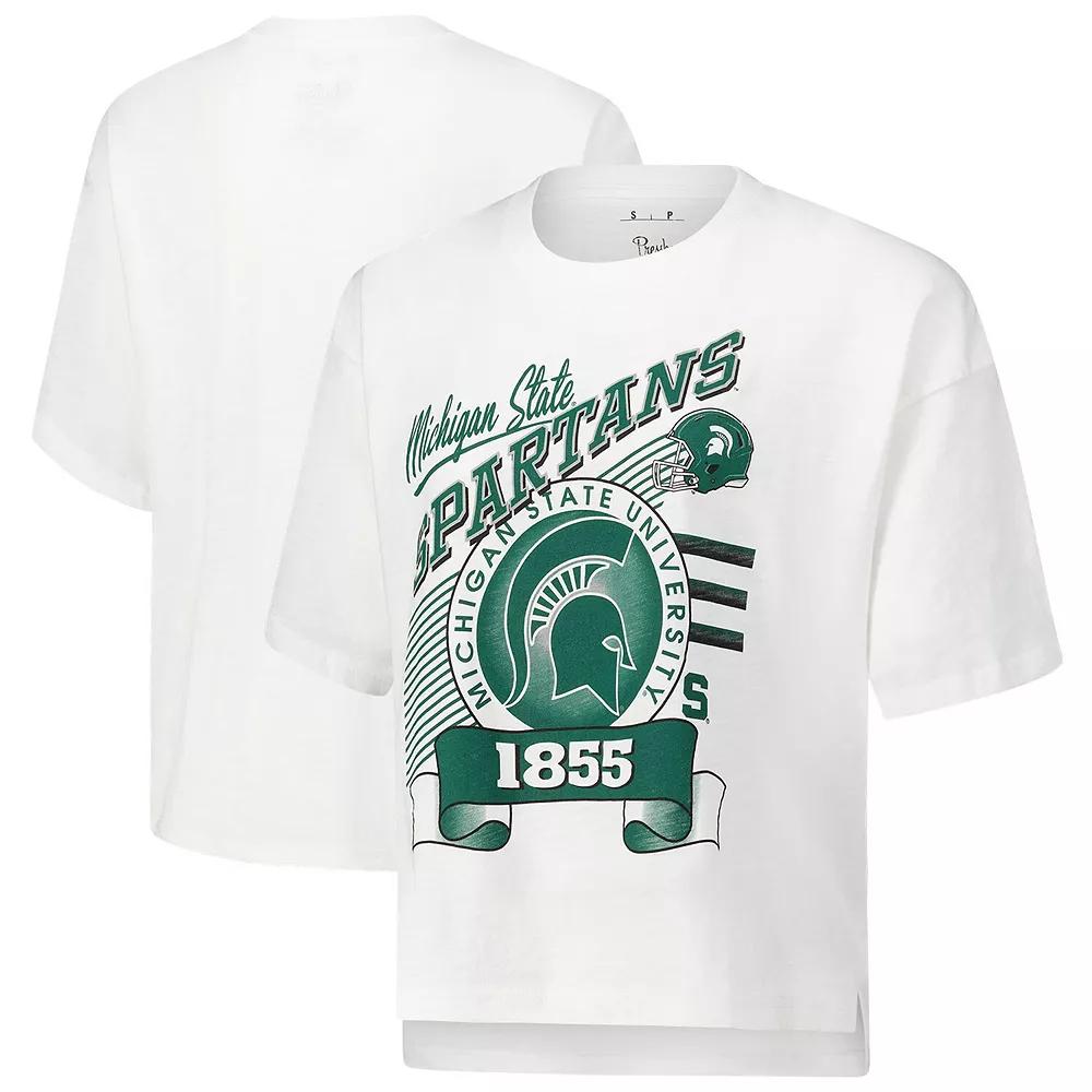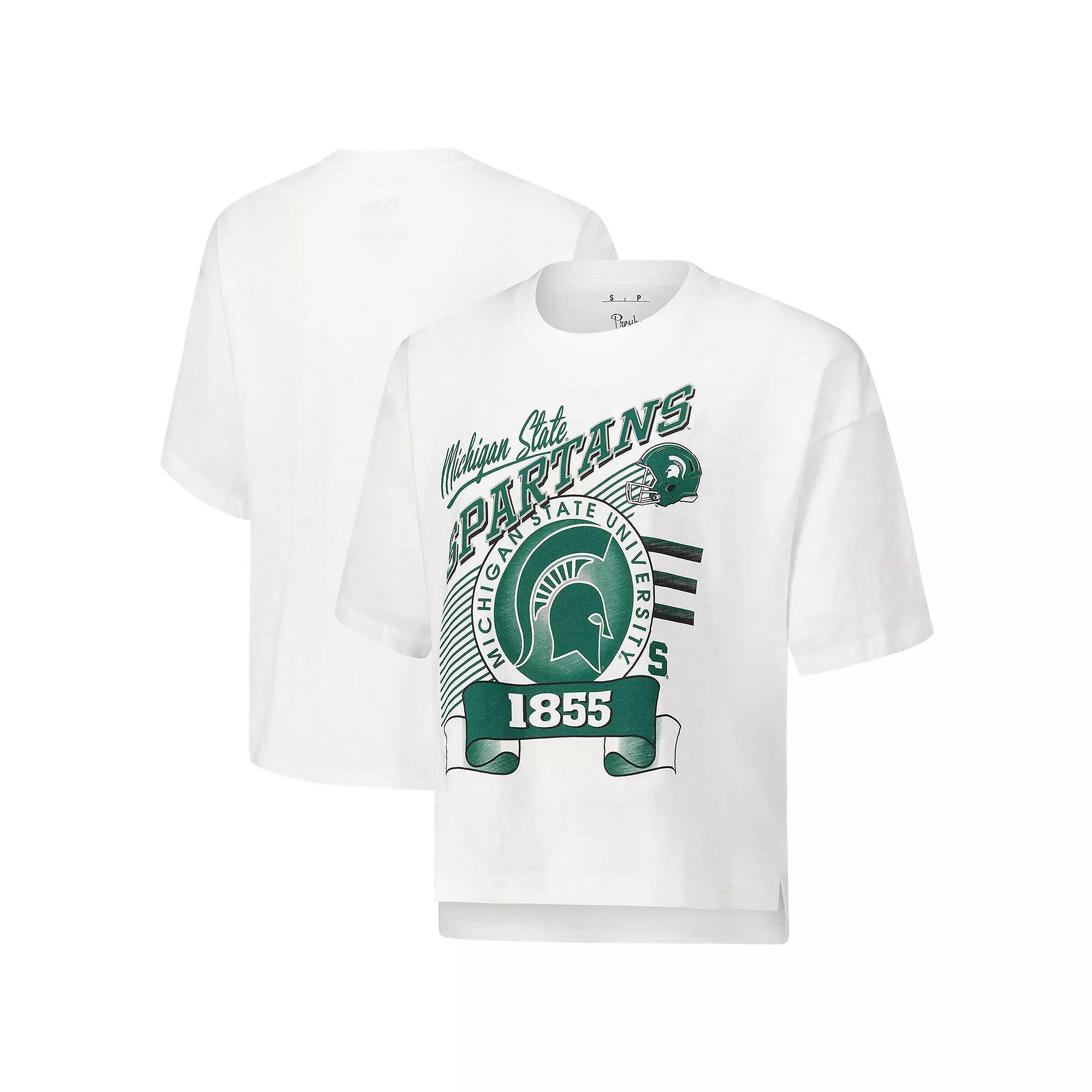 Rock on with your Michigan State Spartans spirit in the stylish Pressbox Rock & Roll Slub T-Shirt. This tee features a stylish droptail hem with side splits, offering a flattering and comfortable fit for any fan. Made from 100% cotton slub fabric, this tee boasts an uneven texture and a natural, organic look thats as unique as your Spartan spirit.Rock on with your Michigan State Spartans spirit in the stylish Pressbox Rock & Roll Slub T-Shirt. This tee features a stylish droptail hem with side splits, offering a flattering and comfortable fit for any fan. Made from 100% cotton slub fabric, this tee boasts an uneven texture and a natural, organic look thats as unique as your Spartan spirit.PRODUCT FEATURESDroptail hem with side splitsOfficially licensedMaterial: 100% CottonImportedMachine wash, tumble dry lowTeam graphic printed across the torsoShort sleeveBanner with teams founding year resting below graphicScript wordmark above center graphicBrand: PressboxSlub fabric for an uneven texture and natural, organic look Color: White. Gender: female. Age Group: adult.