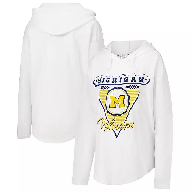 Women's Pressbox White Michigan Wolverines San Bruno Hoodie Long Sleeve T-Shirt,