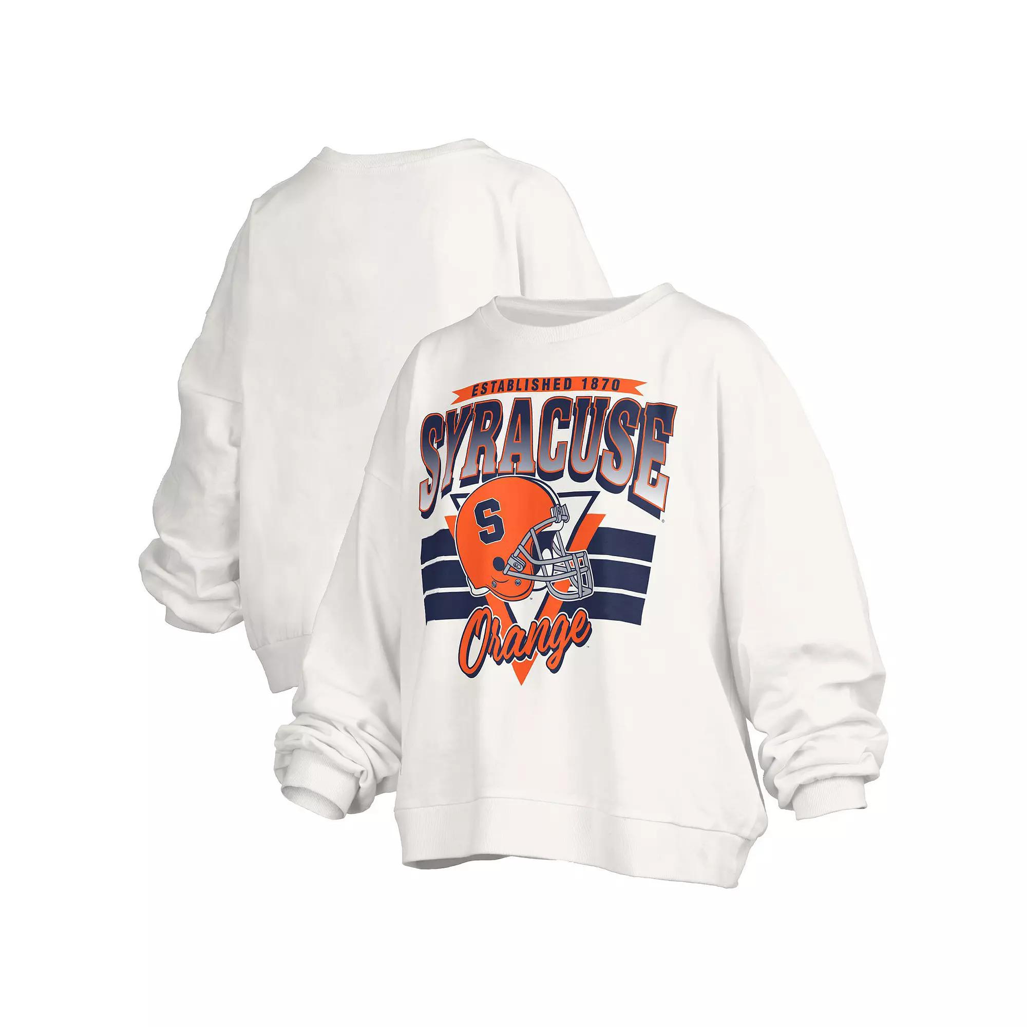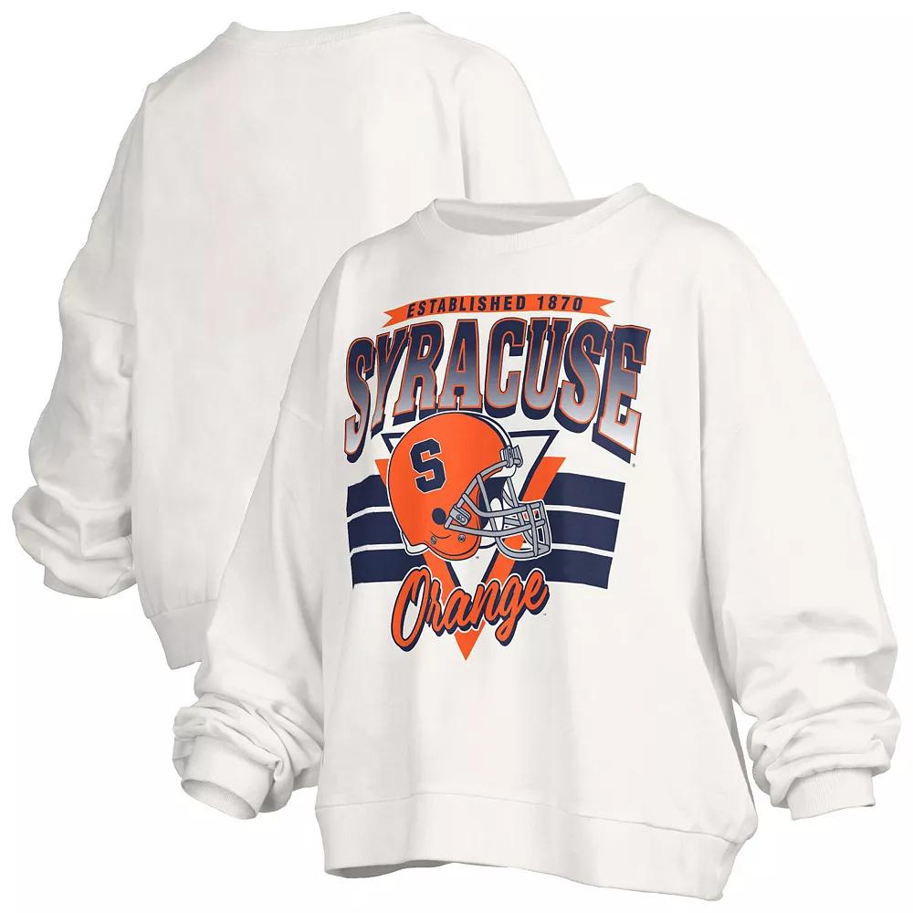Show off your Syracuse Orange pride with this Oversized Janice Retro Waist-Length Pullover Sweatshirt from Pressbox. The oversized fit provides a spacious feel and a laidback look. Screen print team graphics boldly display your Syracuse Orange spirit, making this sweatshirt a stylish choice for game day or everyday wear. Imported. Long sleeve. Machine wash, tumble dry low. Oversized Fit: Intentionally designed with larger proportions for a spacious feel and a laidback look. For a less relaxed fit, consider sizing down. Brand: Pressbox. Crew neck. Hip length (Measures approx. 24). Officially licensed. Dropped shoulder seams provide a relaxed fit. Screen print team graphics. Midweight sweatshirt suitable for moderate temperatures. Material: 65% Cotton/35% Polyester. Pullover. Size: XL. Color: White. Gender: female. Age Group: adult.