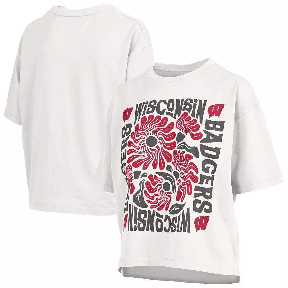 Show your unwavering Wisconsin Badgers pride with this Pressbox Elena Oversized T-Shirt and celebrate your team in style. This top features an oversized fit with dropped shoulders for a trendy look that's perfect for game day or everyday wear. Designed for ultimate comfort, this Pressbox tee also features side splits at the hem, giving you plenty of room to move and cheer on the Wisconsin Badgers to victory. A printed wordmark and floral graphic on the front complete the look, making it a must-have addition to your collection. Brand: Pressbox. Officially licensed. Imported. Short sleeve. Machine wash, tumble dry low. Material: 100% Cotton. Crew neck. Oversized fit with dropped shoulders for a trendy look. Side splits at the hem. Printed wordmark and floral graphic on the front. Color: White. Gender: female. Age Group: adult.