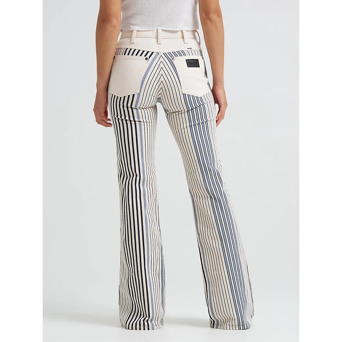 Own your retro moment with our Women’s Print ‘70s Flare Jean, reimagined in a vibrant print that turns every outfit into a statement. This high-rise silhouette hugs through the thigh before flowing into a flared leg, creating a shape that’s as flattering as it is free-spirited. Perfect with heels, boots, or your favorite flats, these jeans bring some extra flair to your denim rotation. Finished with all the Wrangler® icons—including solid back pockets for a color-blocked effect—this pair is built for bold looks.