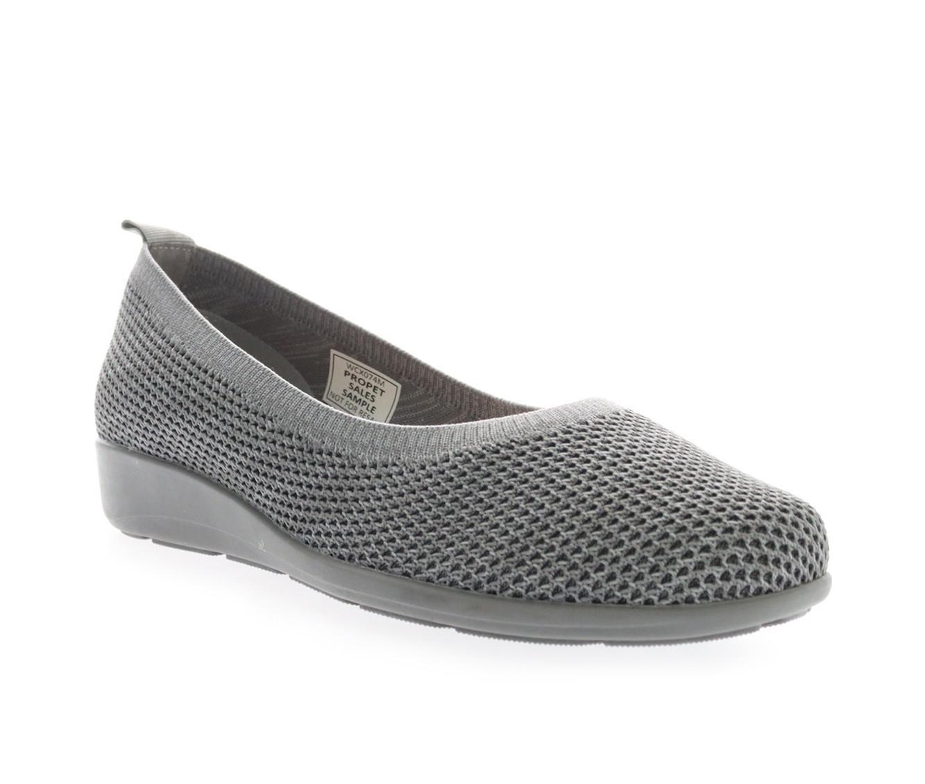 Precision knit upper with variable stretch for fit. Removable PU insole. Wedge heel TPR outsole for cushioned, durable wear. Removable footbed.