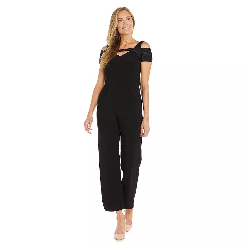 Women's R&M Richards Rhinestone Peek-a-Boo Jumpsuit, Size: 18, Black