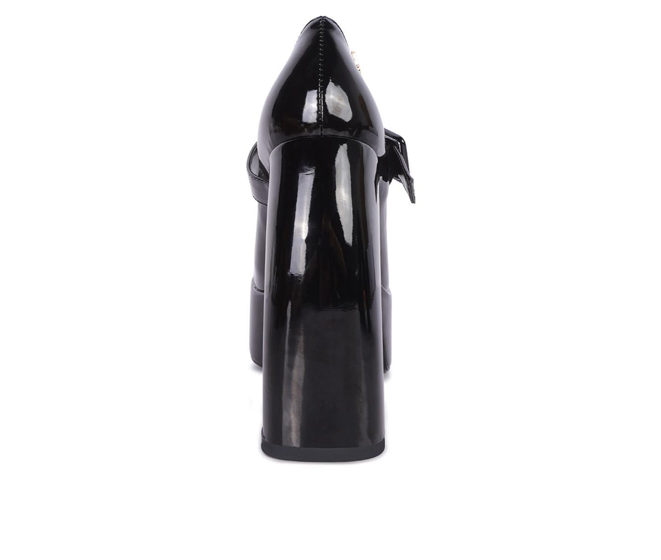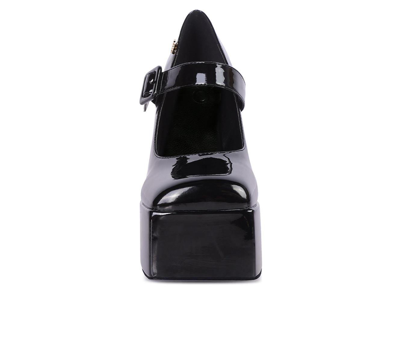 Badas, bold and blingy: handcrafted in Patent redeveloped PU leather, this pair of ulta high block heel Mary Jane is not for the faint hearted. The sandals are well supported by the chunky high platform which adds to the height and cuts strain from feet. It has monochrome pin buckle fastening. The concave cut block heel makes it a head turner!