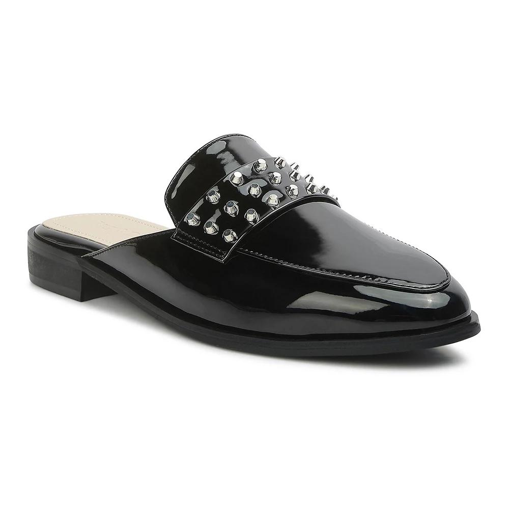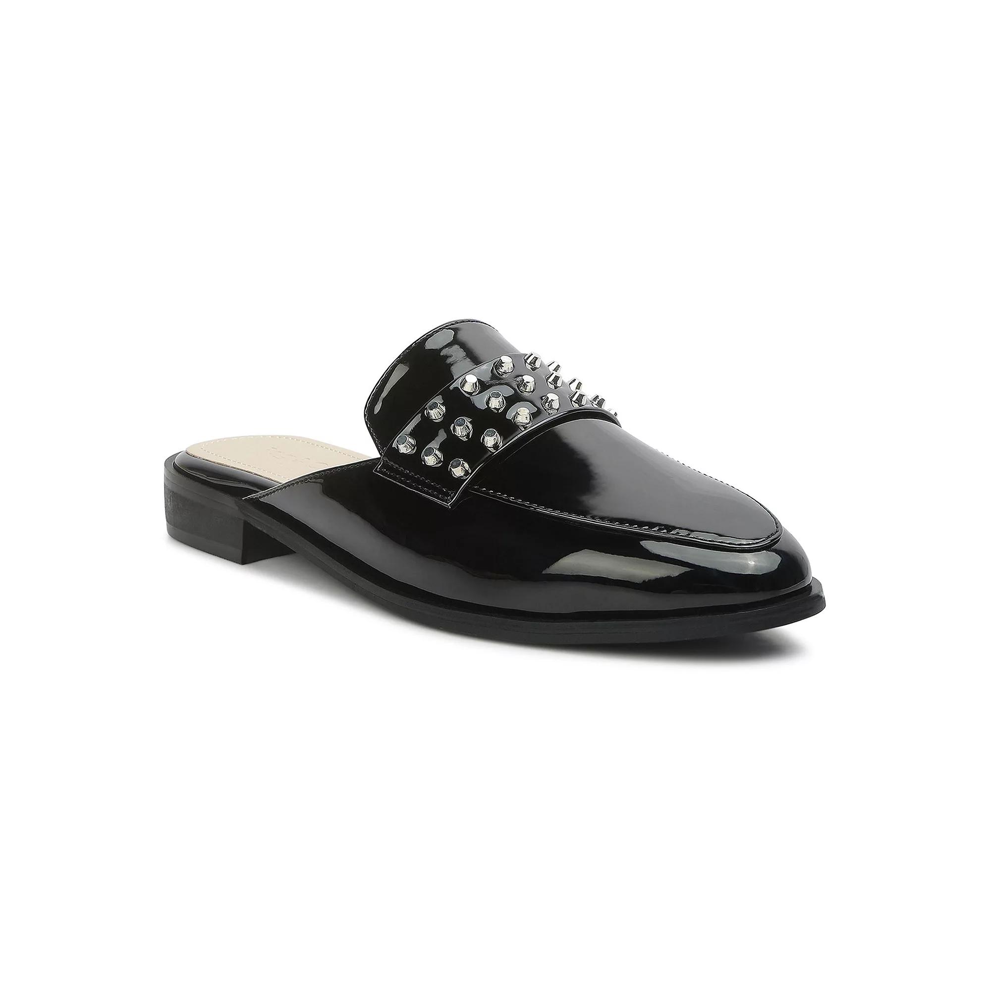 Step into style with these womens Rag & Co. flat mules.Click this FOOTWEAR GUIDE to find the perfect fit and more! Step into style with these womens Rag & Co. flat mules.Click this FOOTWEAR GUIDE to find the perfect fit and more! FEATURES Comfortable Spike detail designDETAILS Patent leatherette upper Soft leatherette lining and midsole Rubber outsole Almond toe Slip-on Polyurethane footbed Slip-resistant outsole 0.39 inch heel height Spot clean Imported Size: 11. Color: Black. Gender: female. Age Group: adult.