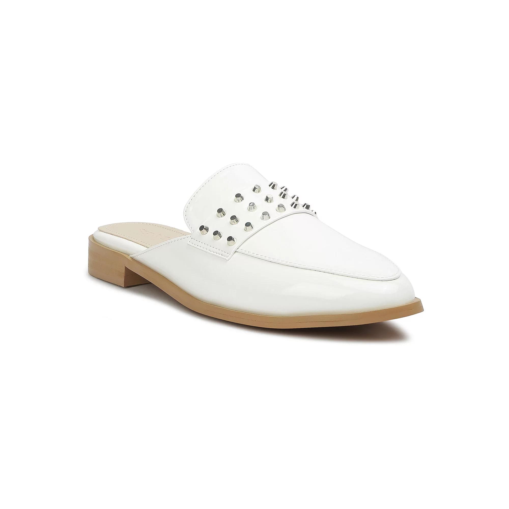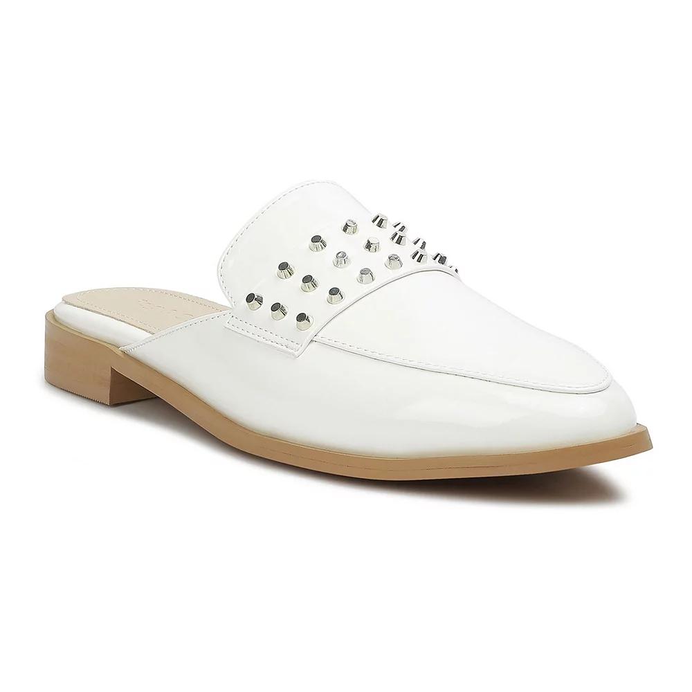 Introducing Rag & Cos Yashta Patent Studded Flat Mules, the perfect statement piece to complete your look. Crafted with a glossy patent finish and adorned with striking studs, these mules exude confidence and style. Whether youre dressing up or down, these mules are sure to make a statement. Slip on a pair of Rag & Co Yashta Patent Studded Flat Mules and elevate your style game today.Click this FOOTWEAR GUIDE to find the perfect fit and more! Introducing Rag & Cos Yashta Patent Studded Flat Mules, the perfect statement piece to complete your look. Crafted with a glossy patent finish and adorned with striking studs, these mules exude confidence and style. Whether youre dressing up or down, these mules are sure to make a statement. Slip on a pair of Rag & Co Yashta Patent Studded Flat Mules and elevate your style game today.Click this FOOTWEAR GUIDE to find the perfect fit and more! FEATURES Comfortable Spike detail designDETAILS Patent leatherette upper Soft leatherette lining and midsole Rubber outsole Almond toe Slip-on Polyurethane footbed Slip-resistant outsole 0.39 inch heel height Spot clean Imported Size: 6. Color: Black. Gender: female. Age Group: adult.