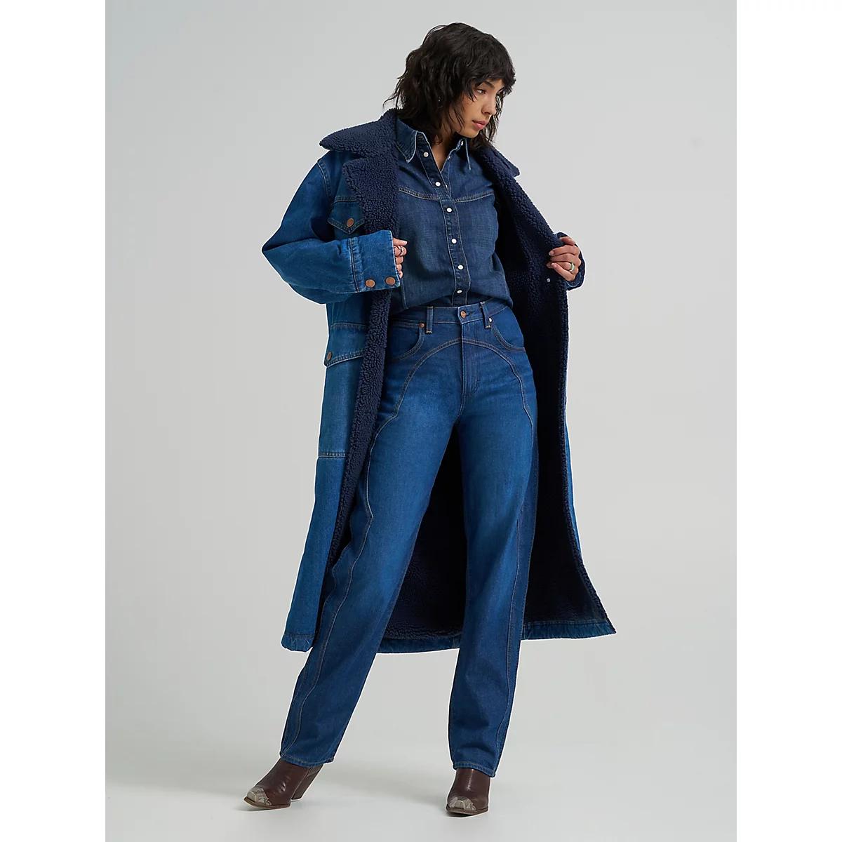 With cooler weather on the horizon, our Women’s Range Sherpa Coat makes it easy to warm up your outfit in effortless Western-inspired style. It’s crafted from cotton in a beautiful blue hue and lined with sherpa to keep you cozy all season long. This jacket features a longline silhouette and an oversized fit that’s perfect for layering. Plus, it comes with a single-point back yoke, two chest flap pockets with the ‘W’ embroidery, large lower patch pockets with flaps, a full button closure, and a large, notched collar to complete the look.