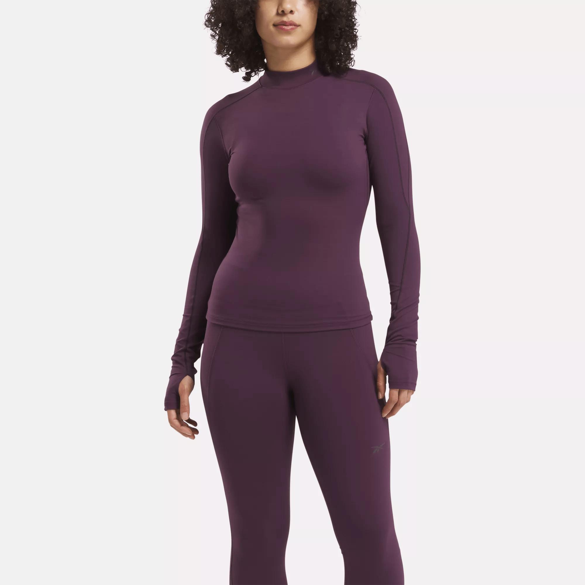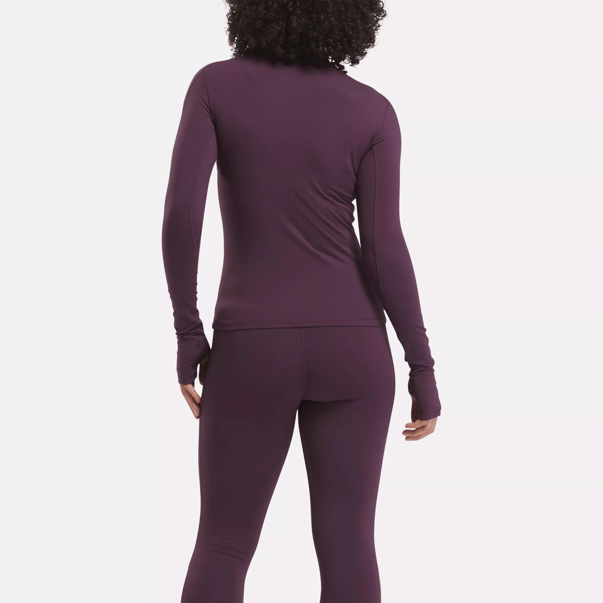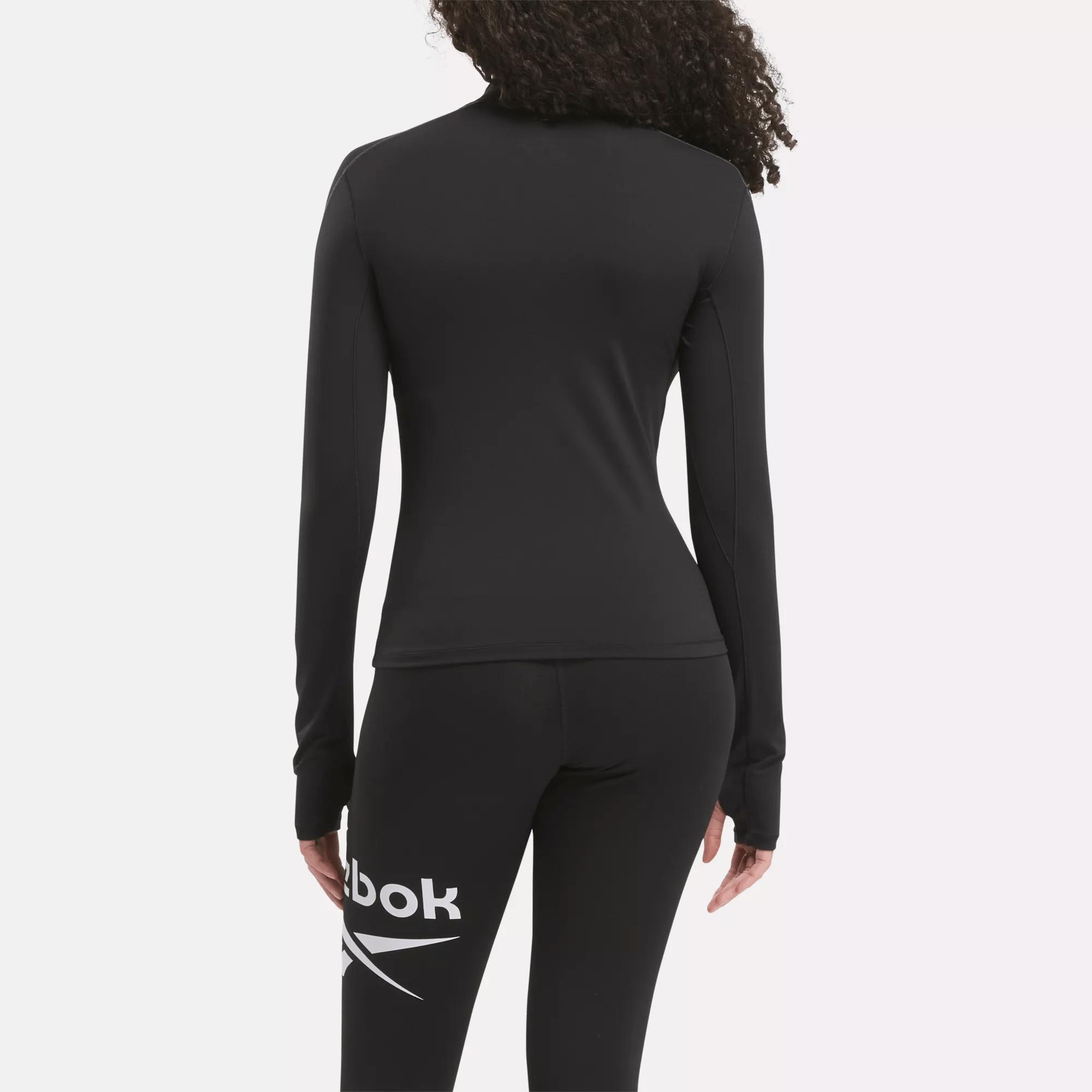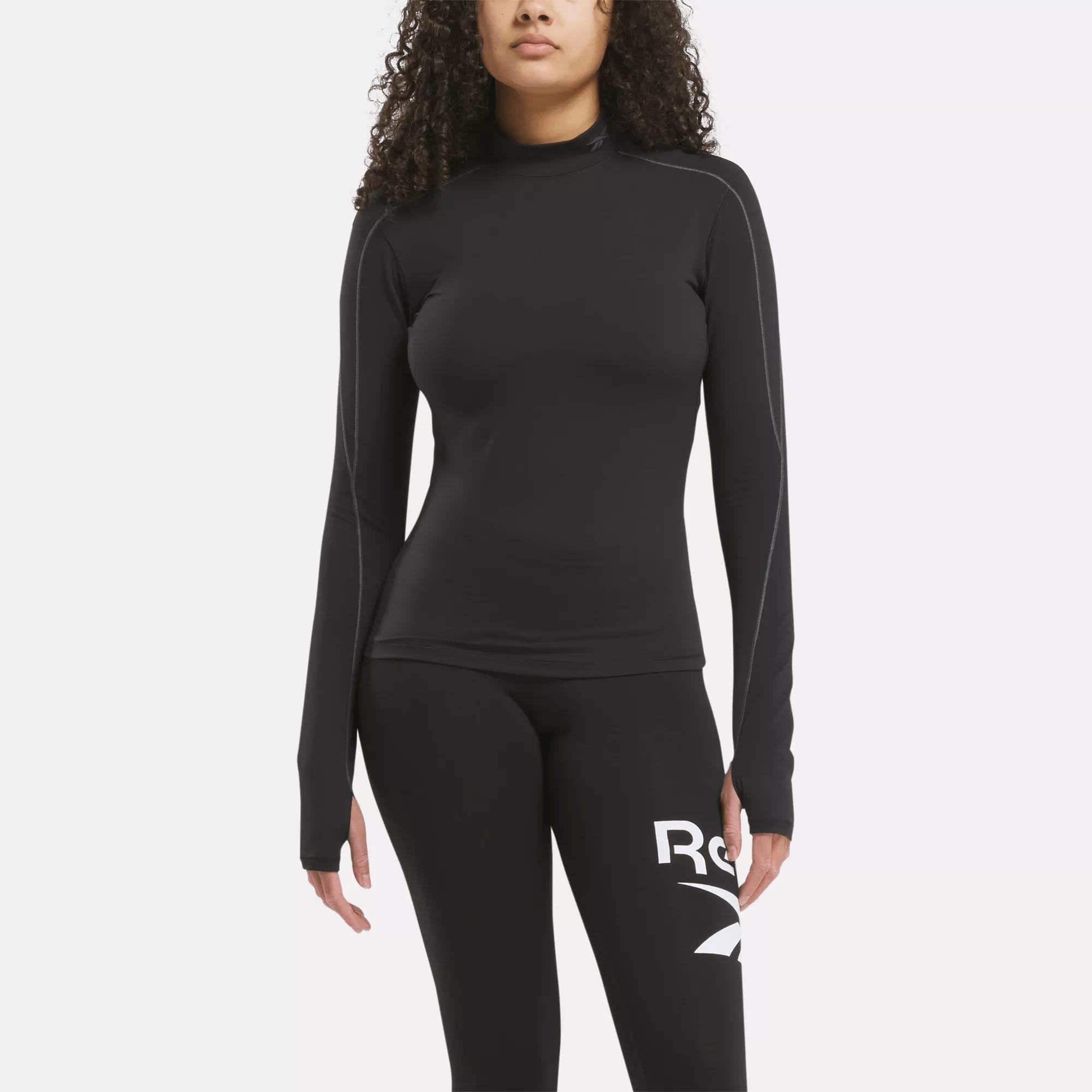 A warming tee with a snug fitCrush your cold-weather workouts in this women's Reebok t-shirt. RBK-FIRE+ holds in heat so you can cruise comfortably through long runs or outdoor boot camp classes. Thumbholes at the cuff keep your sleeves in place and your hands warm. A reflective logo helps you be seen in low light.