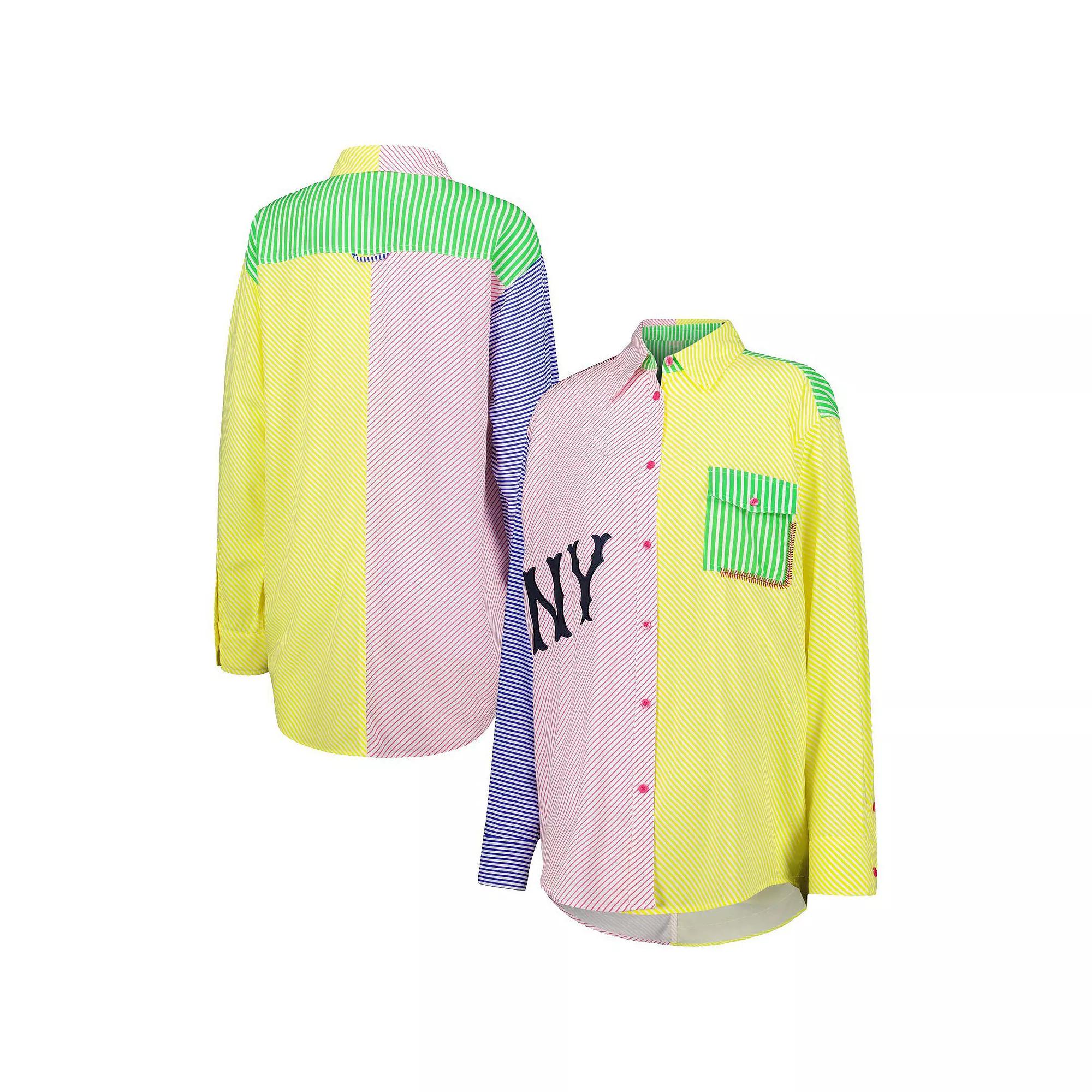 Show your New York Yankees pride in colorful fashion every time you throw on this button-up shirt. The oversized New York Yankees logo pops against the vibrant striped fabric, giving this versatile shirt a game-winning edge. Whether you dress it up or down, an outfit centered around this flowy shirt is bound to be a hit.Show your New York Yankees pride in colorful fashion every time you throw on this button-up shirt. The oversized New York Yankees logo pops against the vibrant striped fabric, giving this versatile shirt a game-winning edge. Whether you dress it up or down, an outfit centered around this flowy shirt is bound to be a hit.PRODUCT FEATURESImportedFlowy fit that hits below the hipsTwo-button cuffsEmbroidered fabric appliqueRounded droptail hemLong sleeveEmbroidered LogoOfficially licensedMachine wash, tumble dry lowFull-button frontBrand: TerezMaterial: 100% RayonOne chest pocket with button closure Size: M. Gender: female. Age Group: adult.