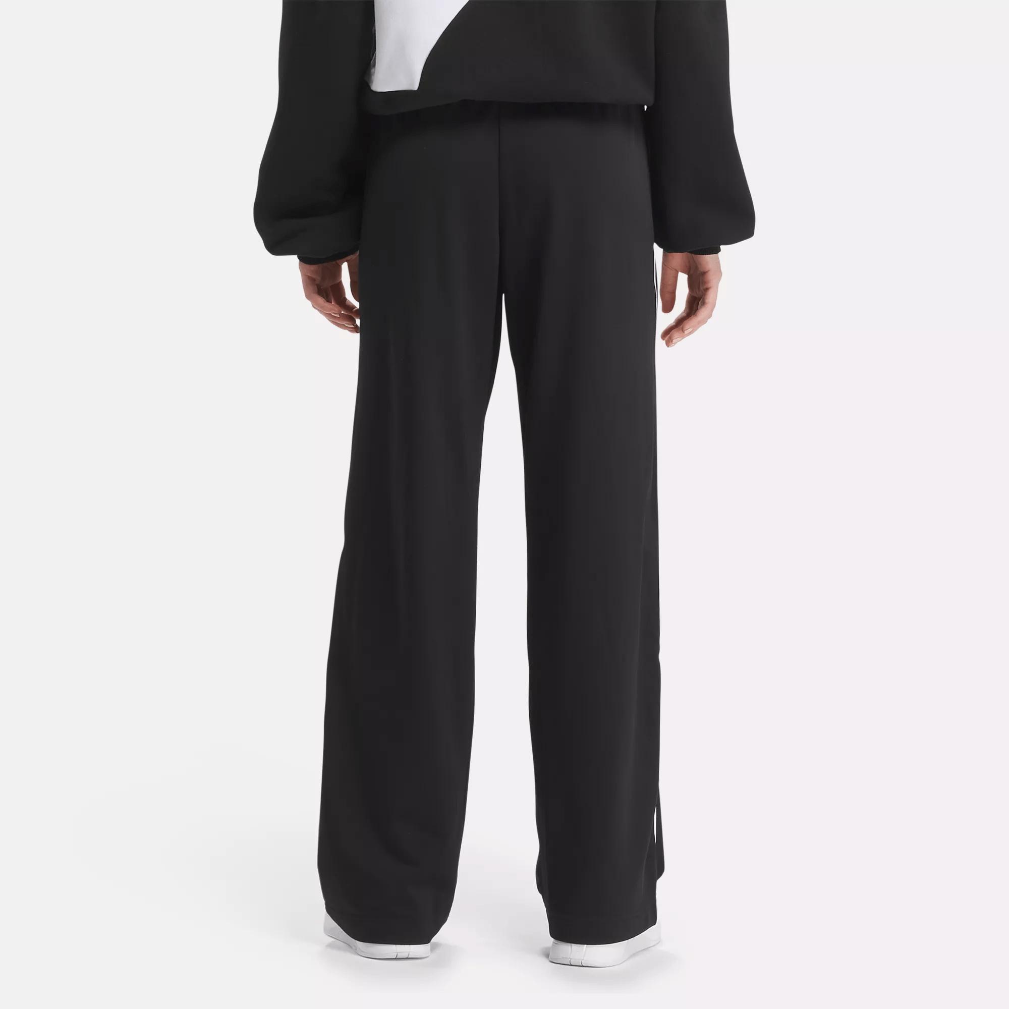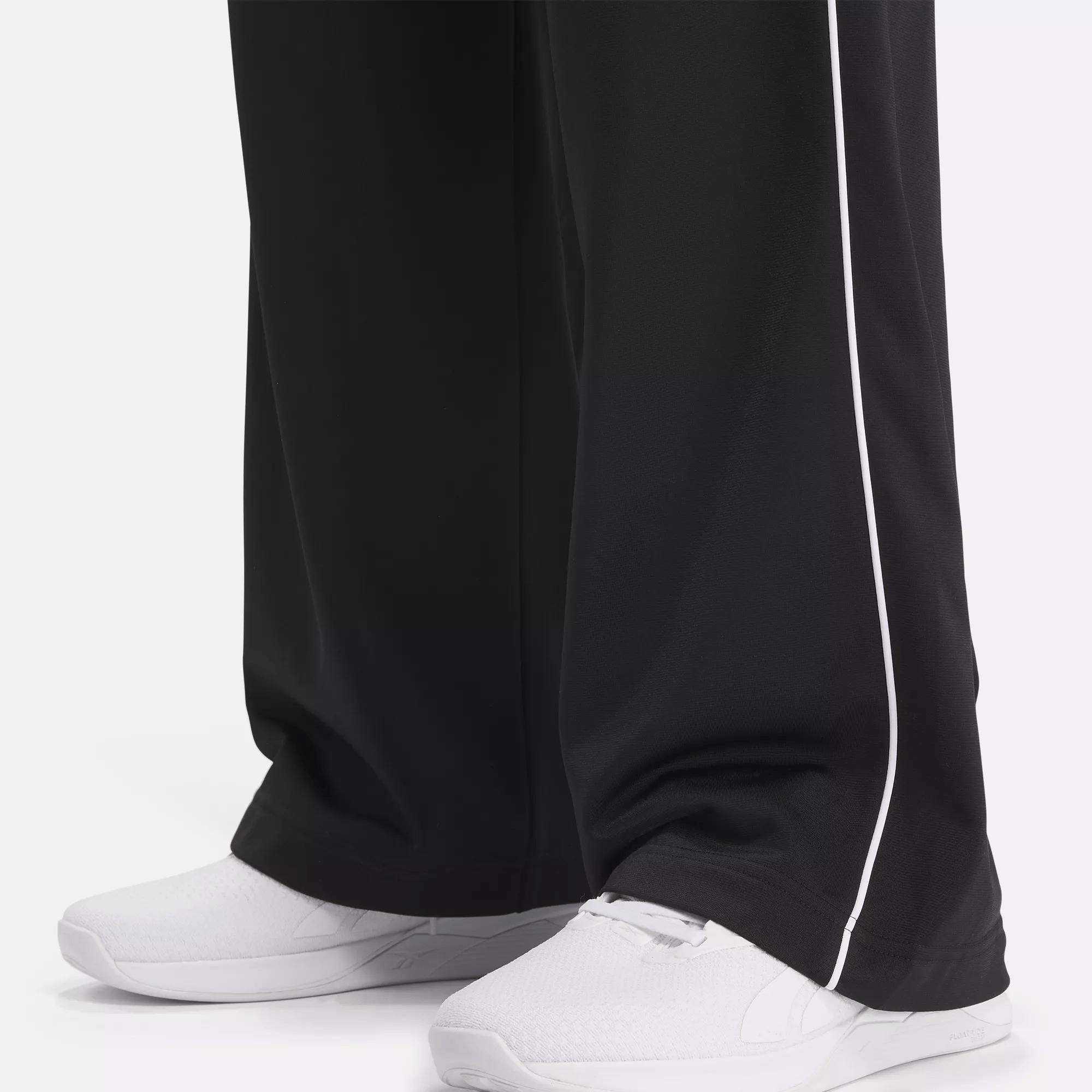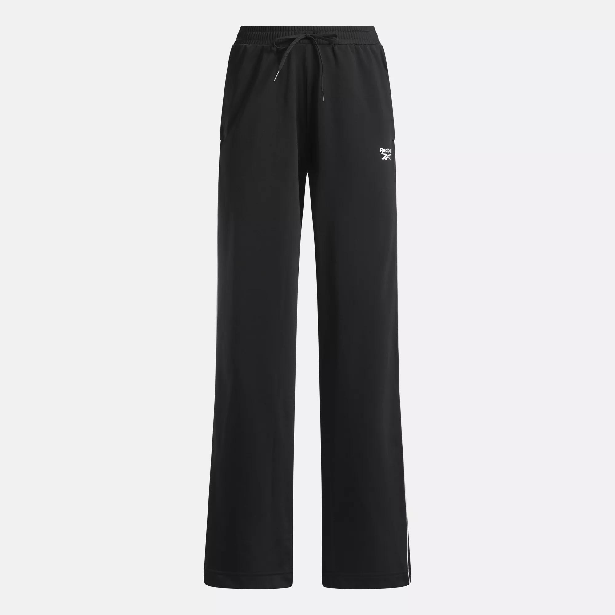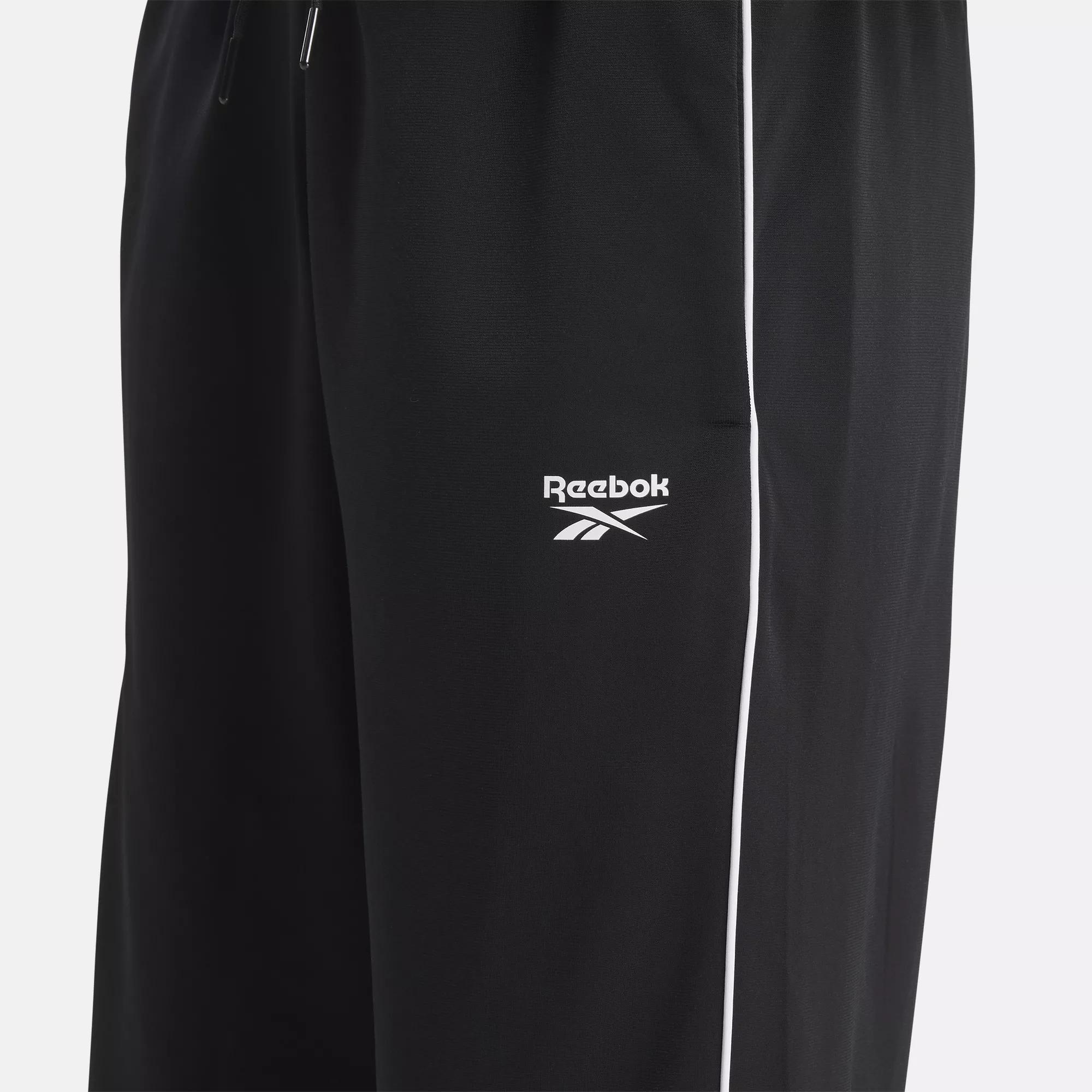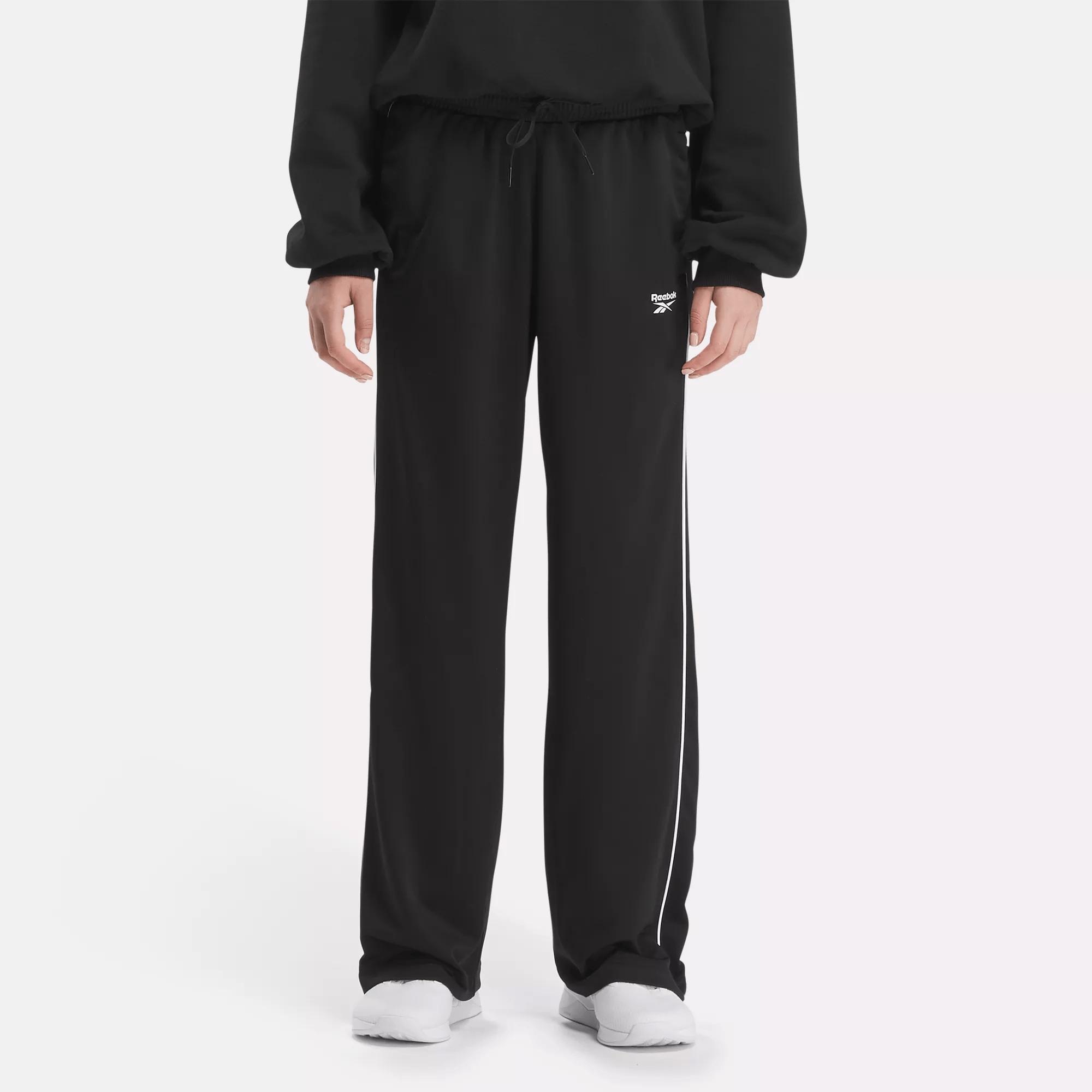 Sporty track pants with a bold Reebok hitNo matter how many times they're reinvented, track pants never go out of style. Smooth, silky tricot fabric gives this women's pair a casual ease and a comfortable feel. An oversized Vector logo on the leg shows some big Reebok love.