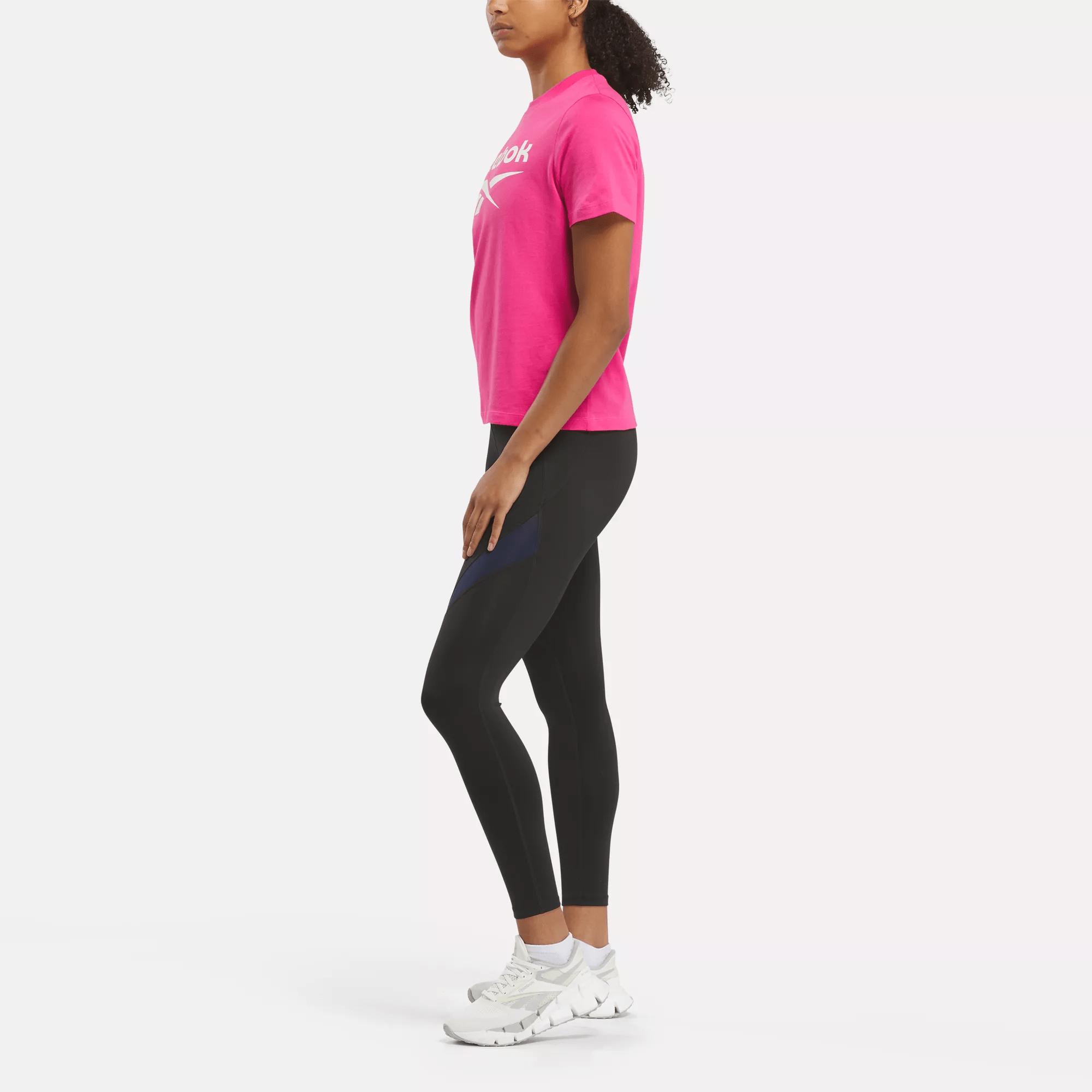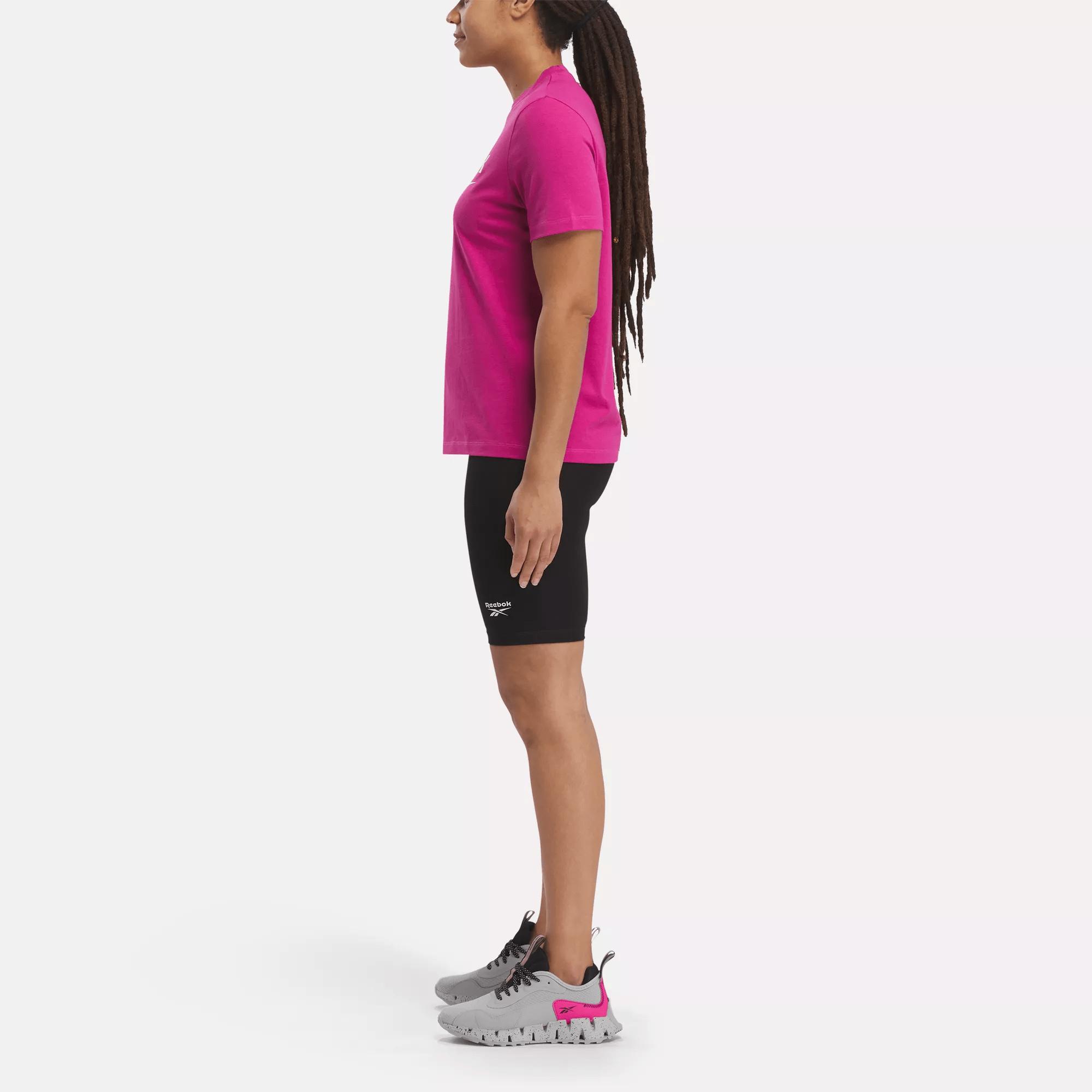 A cotton tee with a bold Vector logoWear your Reebok pride front and center. This women's t-shirt features a bold Vector logo to go with your sporty style. The single jersey cotton has a breezy feel that keeps you comfy on morning walks and long, lazy afternoons.