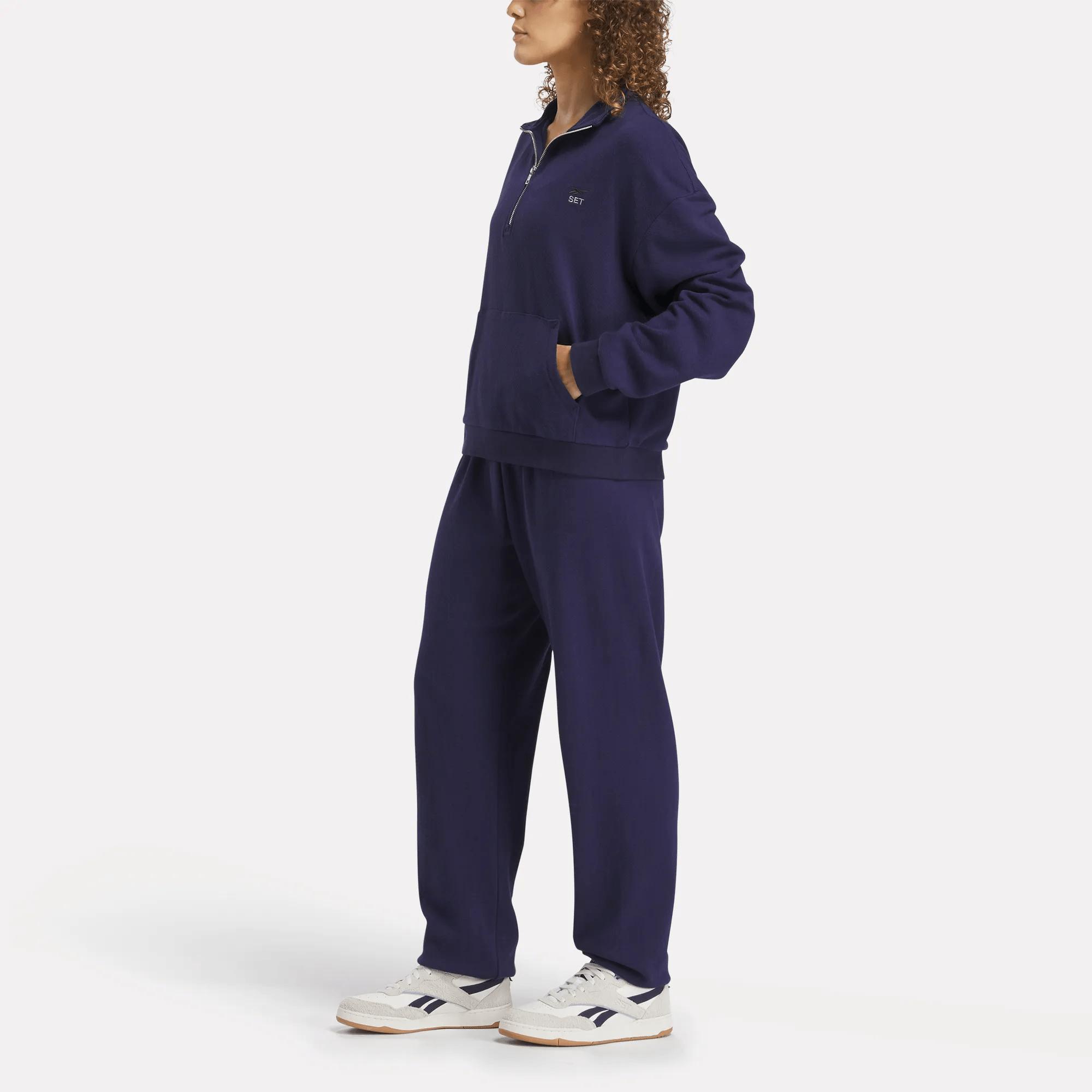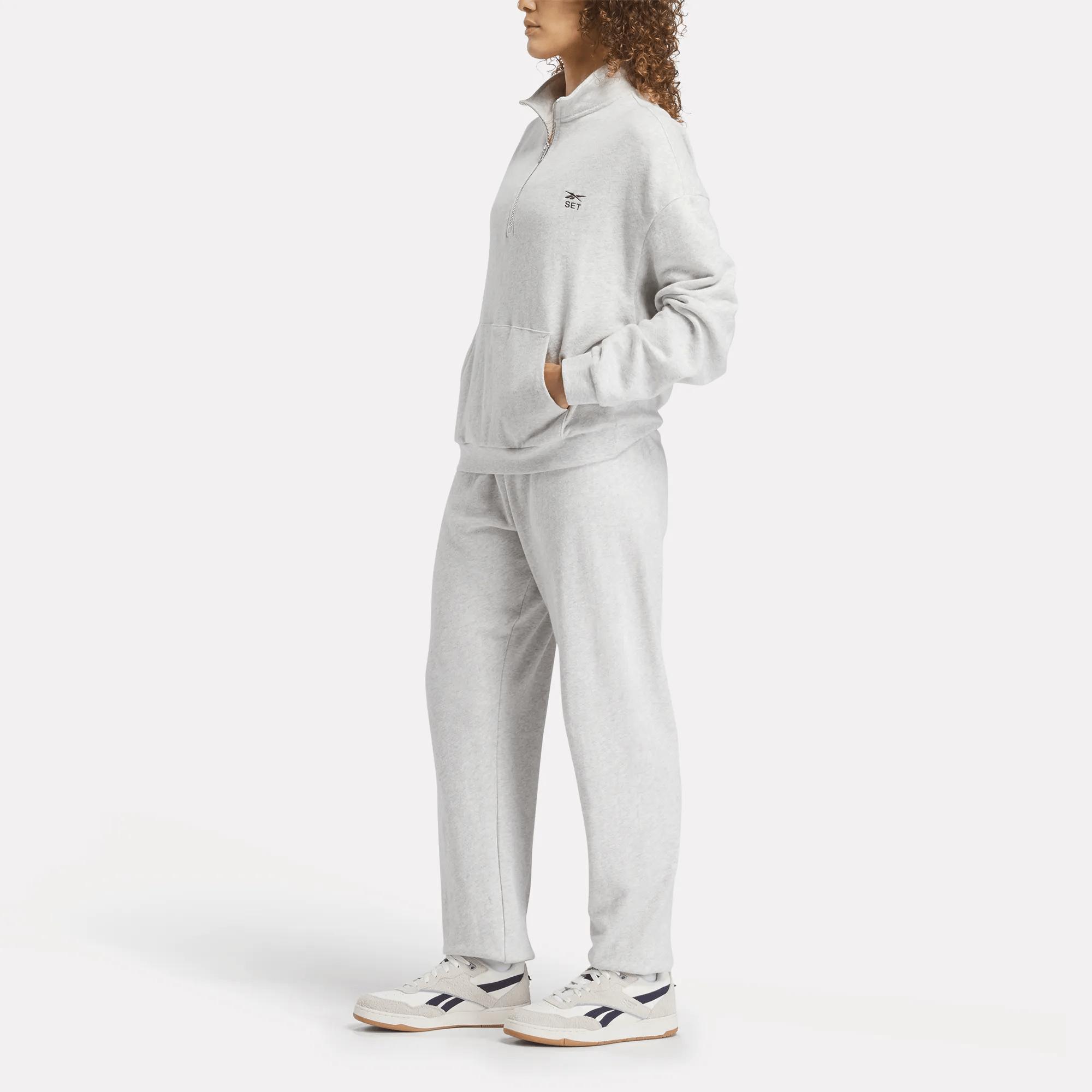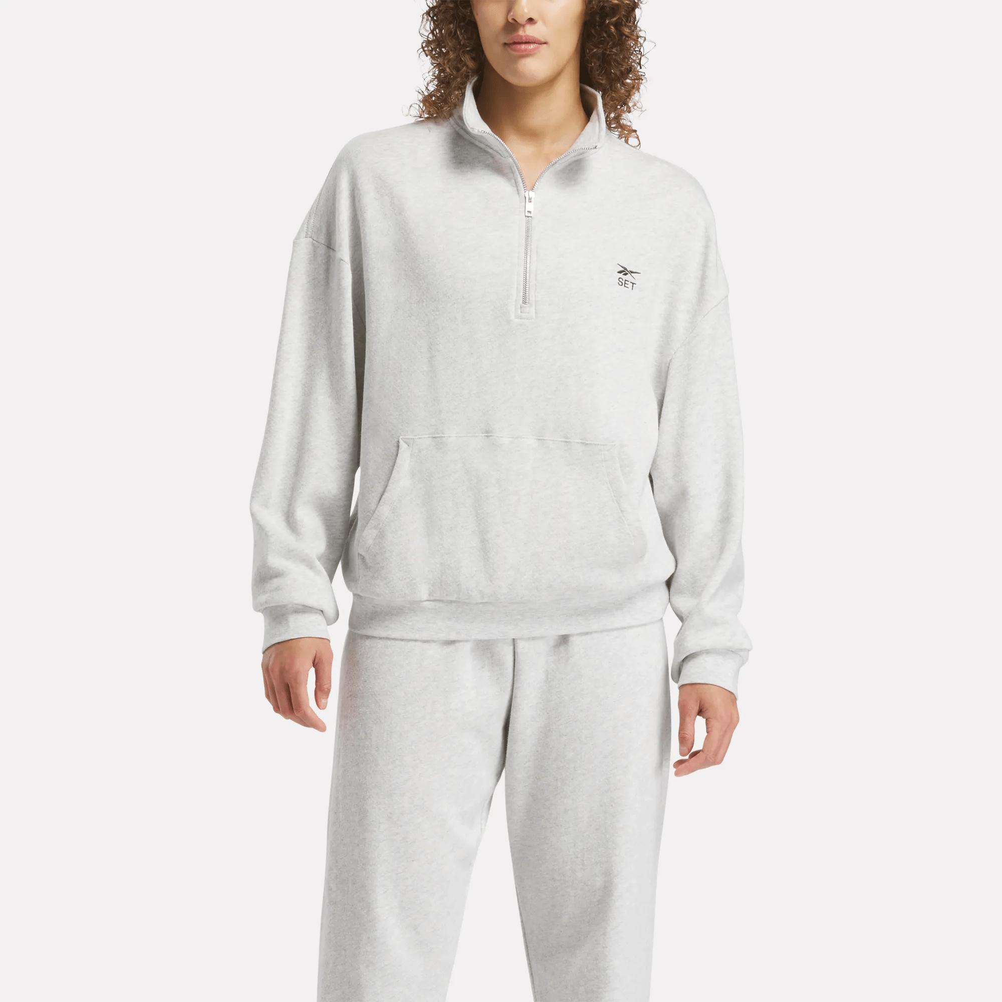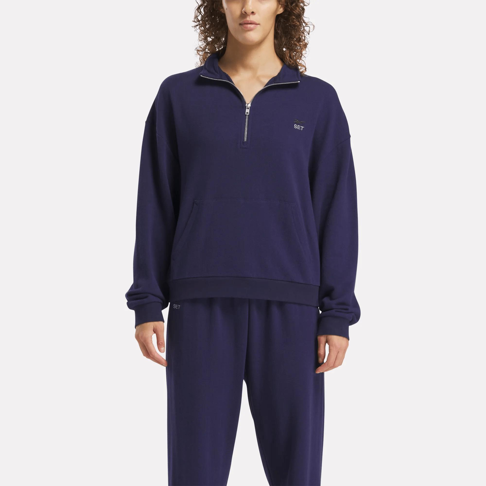 A quarter-zip sweatshirt created with SET ActiveFounded in Los Angeles in 2018, SET Active wants to simplify the way you get dressed. This women's Reebok x SET sweatshirt is cut generously so you can wear it to the gym or while lounging at home. Cotton terry knit feels extra soft against your skin.